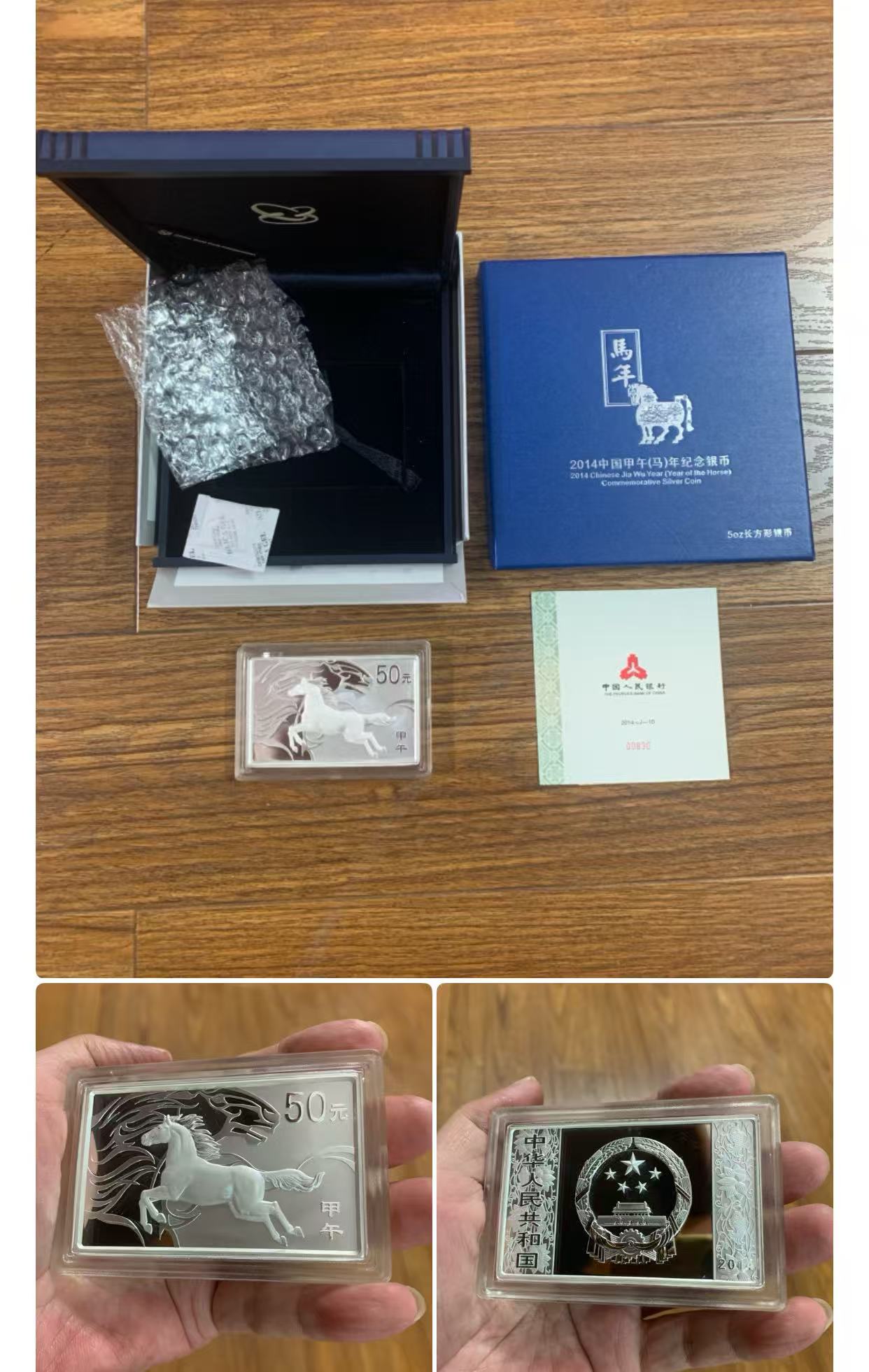 2014方银马(5oz)证书号:00830,价4850元,好品原盒原盒原证