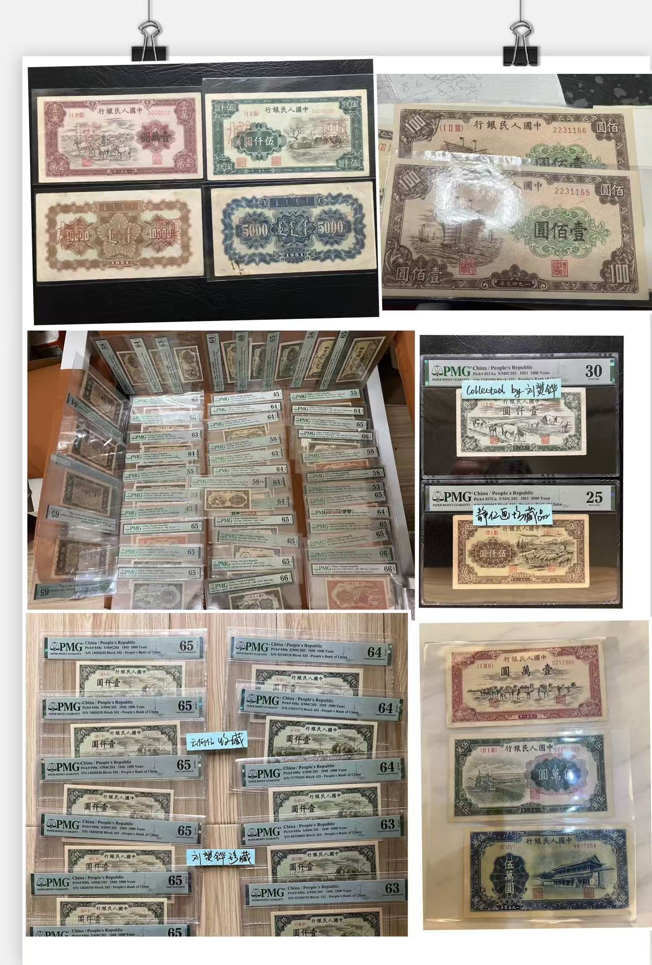 100元红轮船、100元驮运、10元工农等基础品种,好品相2000元起,全品价格另议;