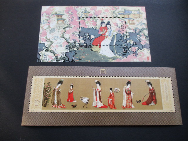 一。红楼梦:无胶380元。仕女图:背面左下一个微小淡黄点,金亮330元。
