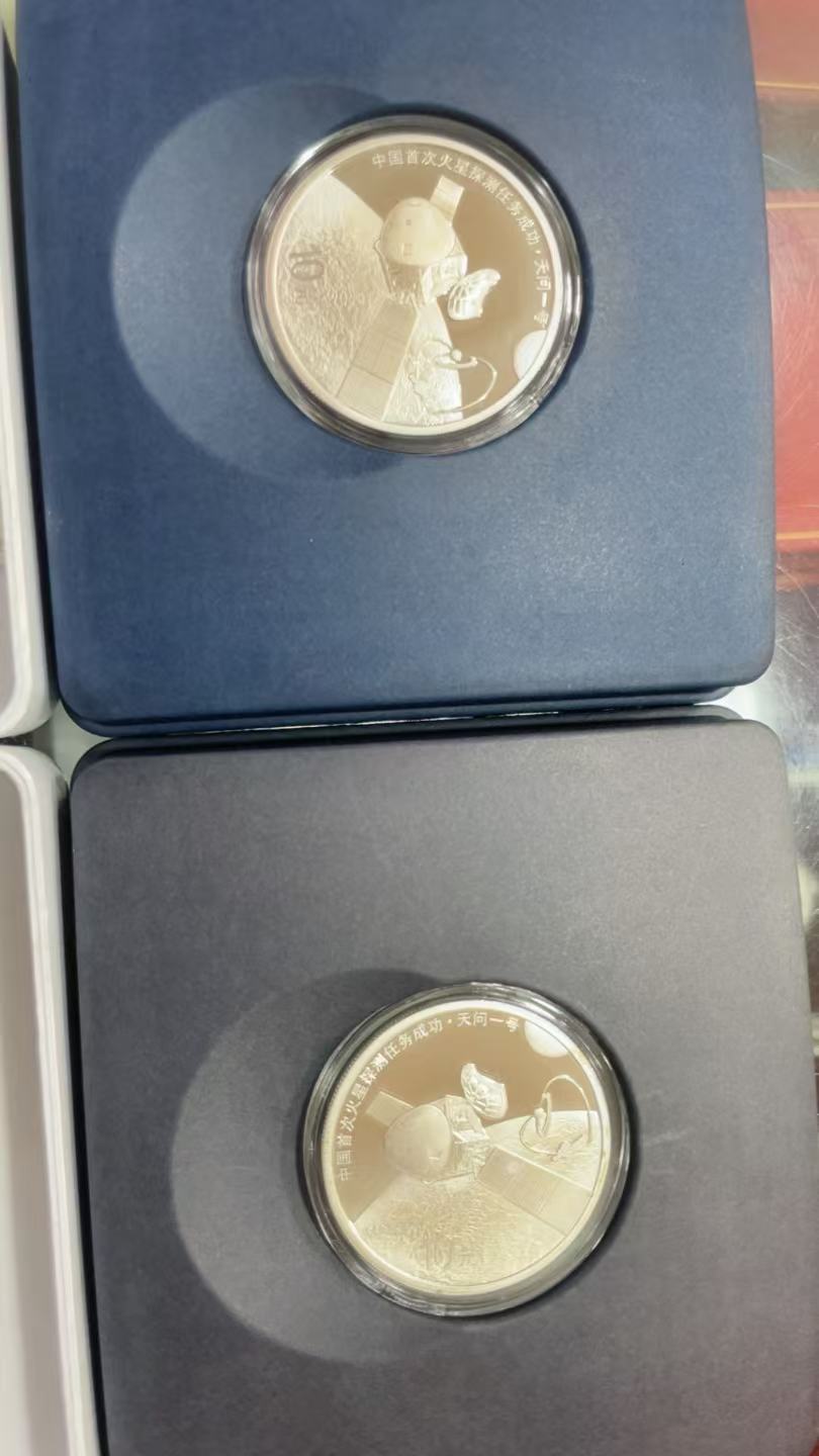 如图,火星2枚,730元每枚,建党2枚,780元每枚,全品,配原盒原证书,一起走,款打签名档银行卡