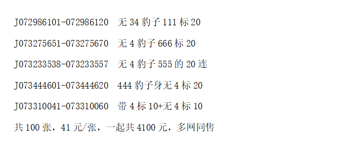 号码如图,无4、无34豹子标十,包品包顺,款到发货,多网同售,确认后联系