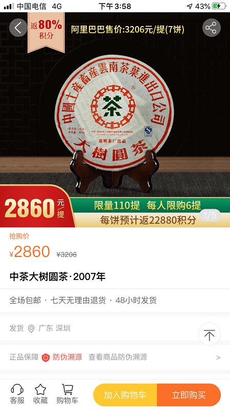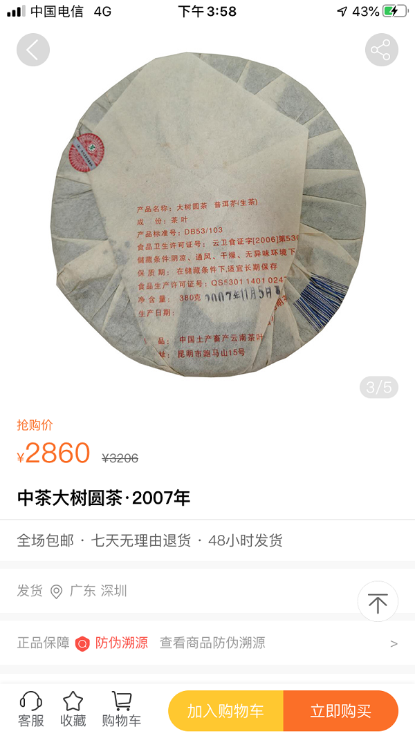 仅售325元1饼!品质正品毫无疑义,绝对确保正品,数量有限,