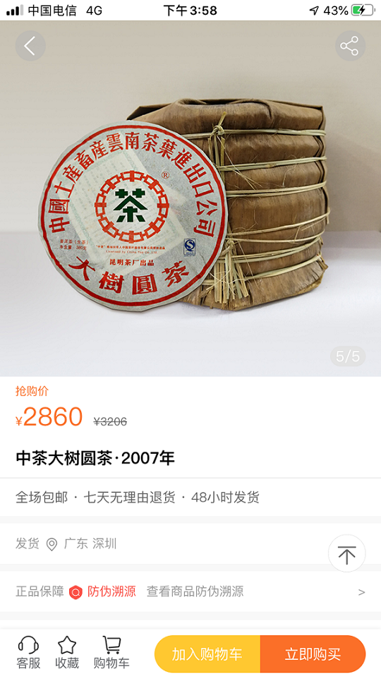 中国唯一一家中字头国企“中国土产畜产云南茶叶进出口公司”简称中茶07大树圆茶,带溯源芯片防伪,假一罚十!!!