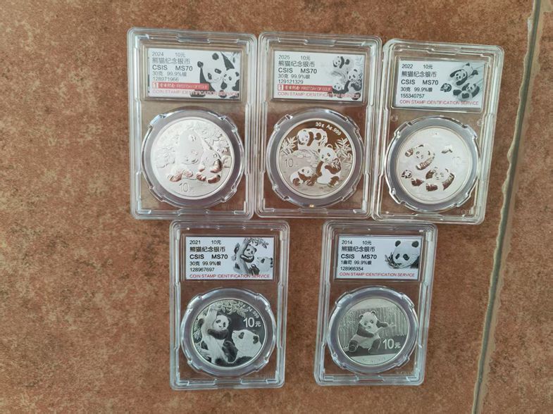 售2014、21、22、24、25年信泰评级银猫各1枚