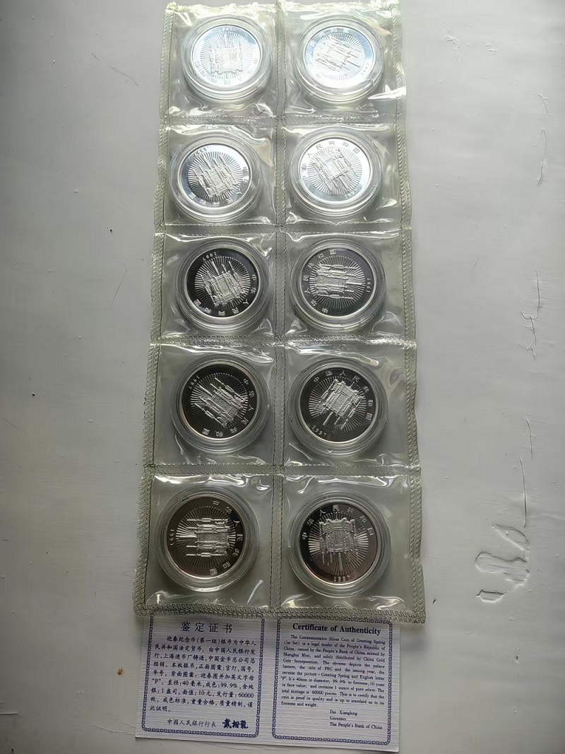 出97年迎春纪念银币10枚,96年熊猫银币60枚