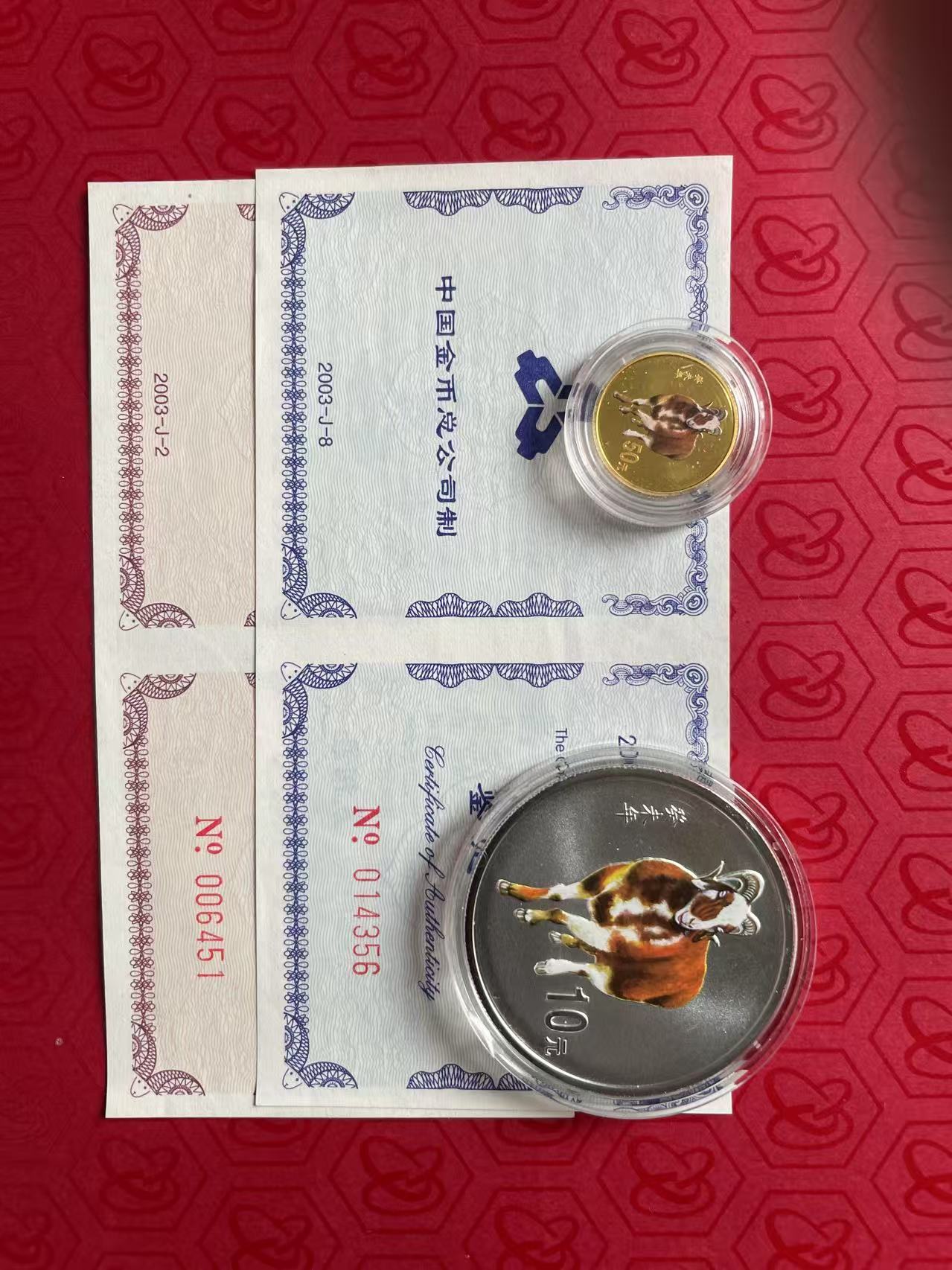 09年彩金银牛1套10500元,05年彩色金银鸡1套5200元, 03年彩色金银羊1套4300元,前贴撤。