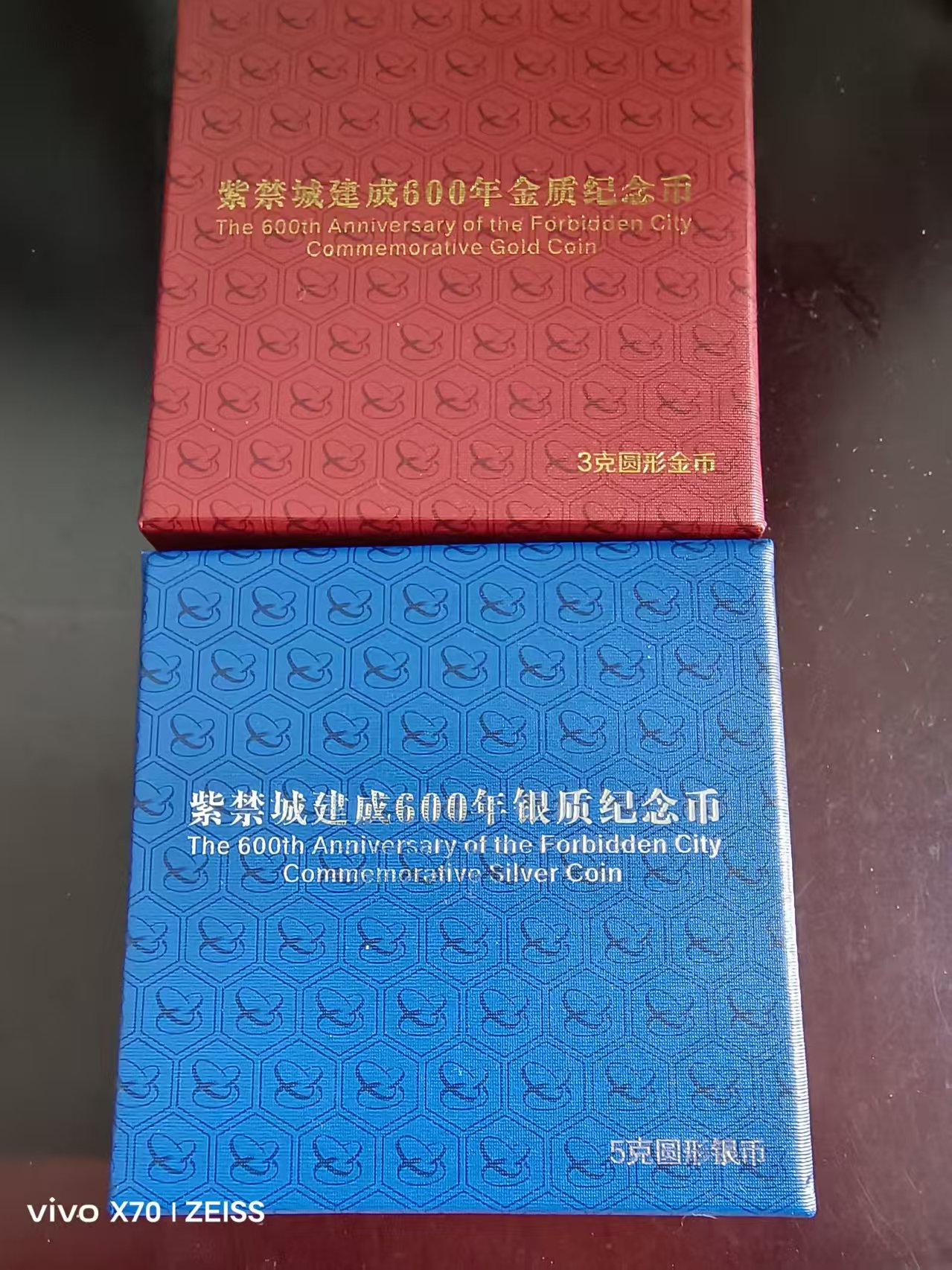 紫禁城金币3克,银币5克 带盒证件全,证书一对同号,一起3980元 包品包邮