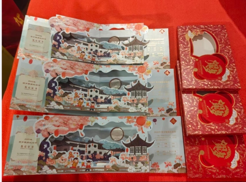代友出8克贺岁福字币,3盒,1盎司“太空行走”银币,1枚,带盒带证书号,