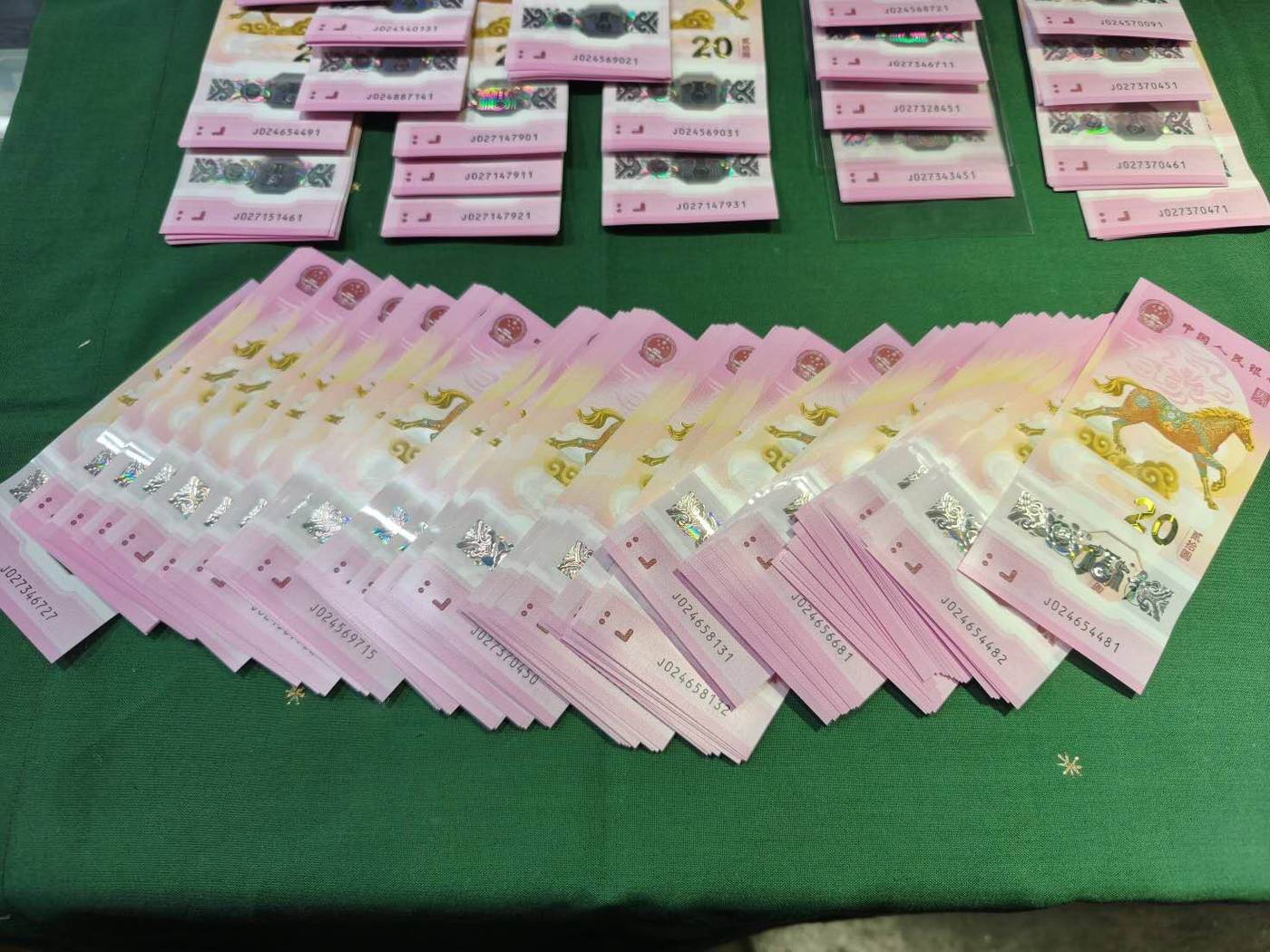 马钞383张(25组标十,其中2组尾41、133张散,其中16张尾4)……通打35.5/张