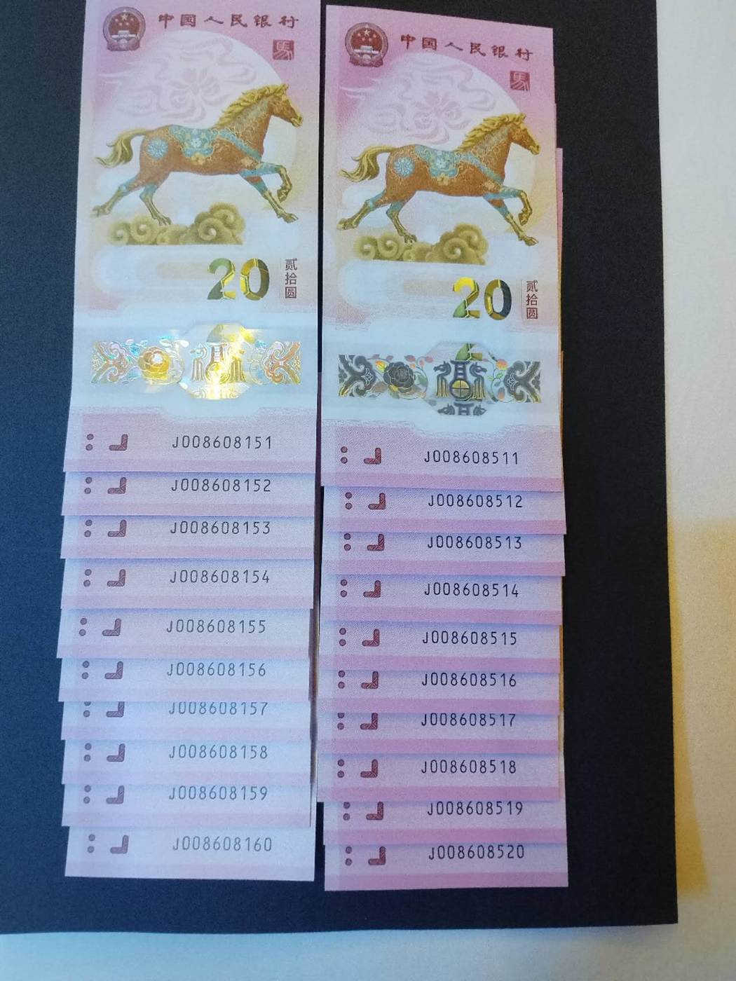 出马钞国门号两组金马车标十,都是01568组合,两组共售4300元,确认后电联或加微信tmw899联系!