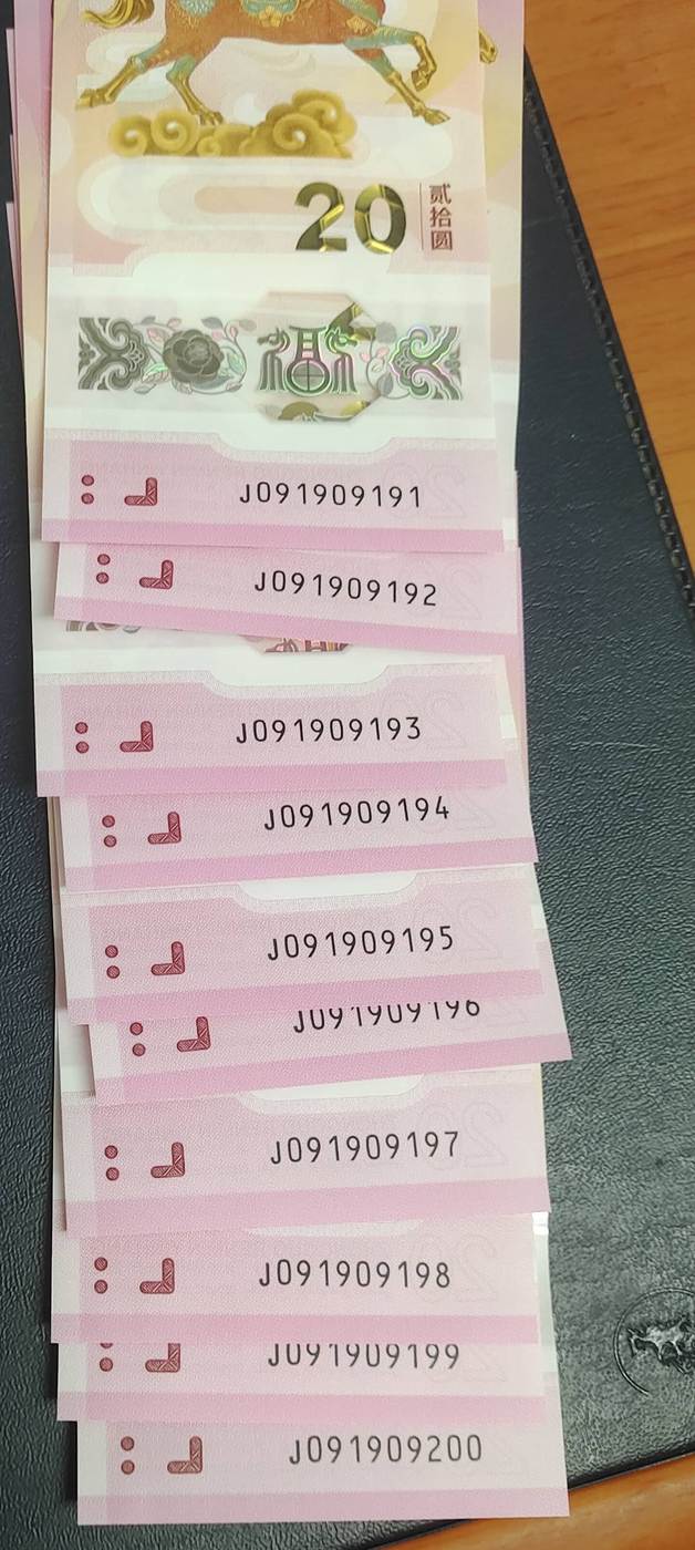 → 5500出一组马钞标十091909191-091909200