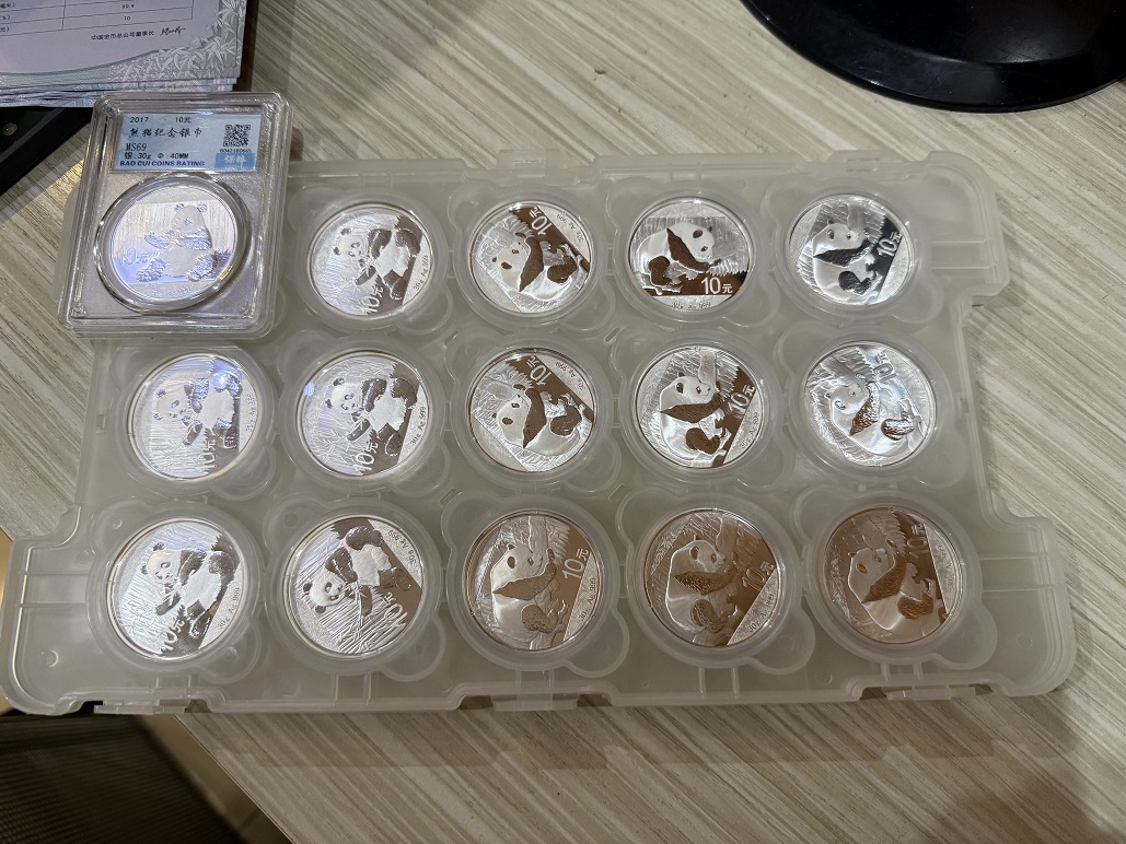 出售银猫一批。2016年9枚和2017年6枚,总共15枚。好品如图:售价775元/枚*15=11625元,三包到手。