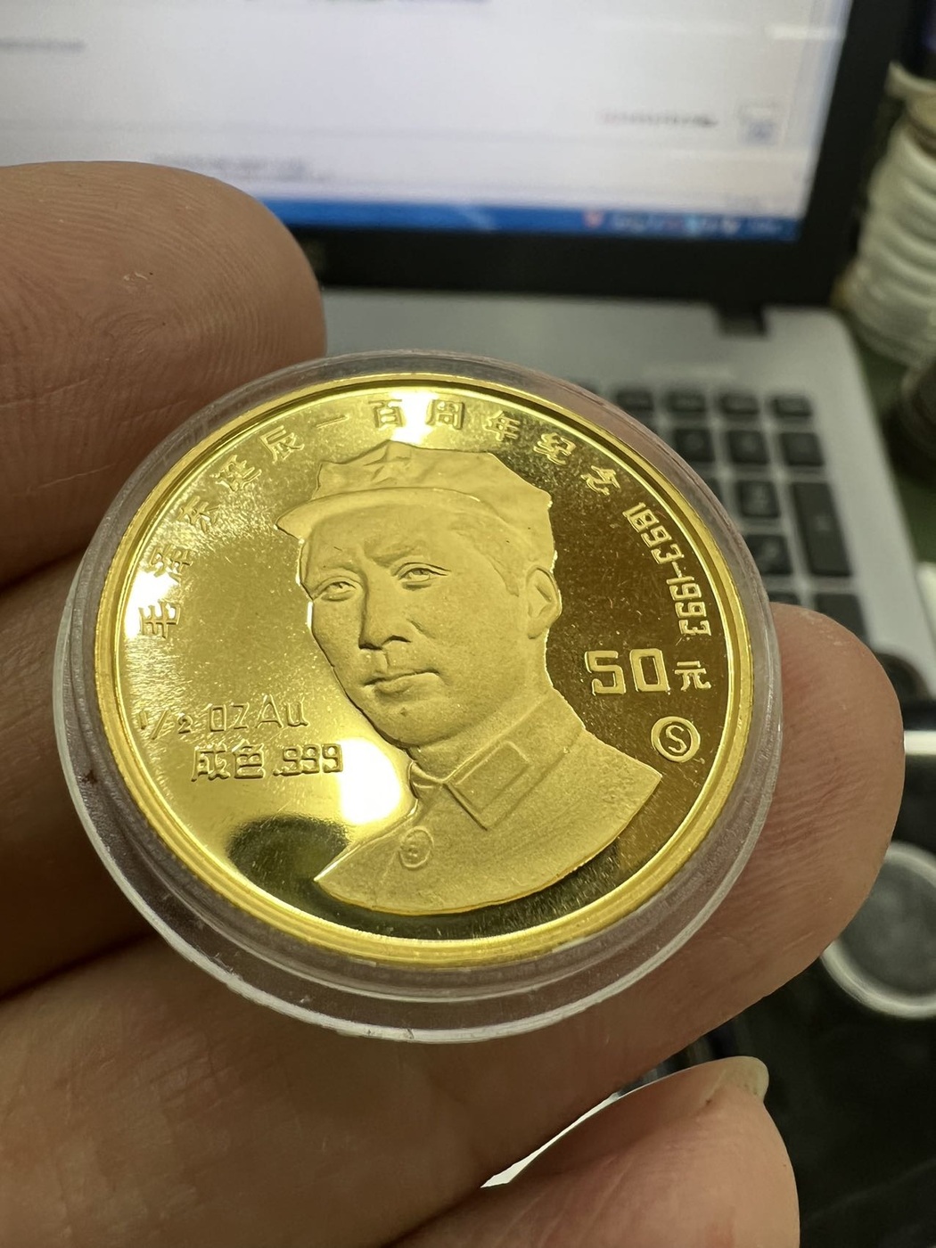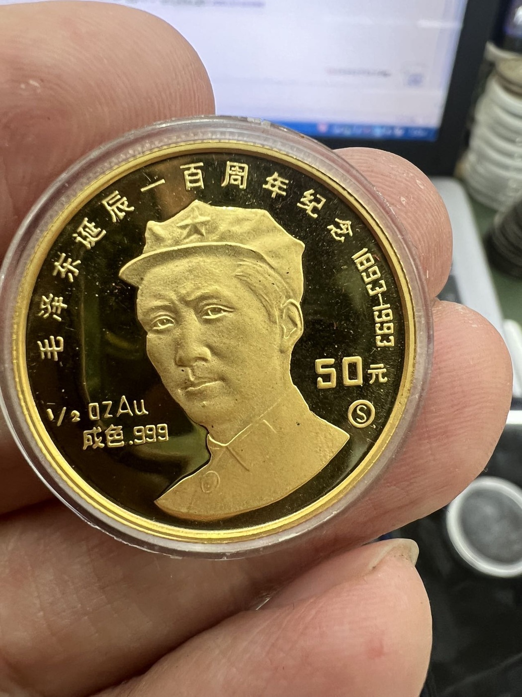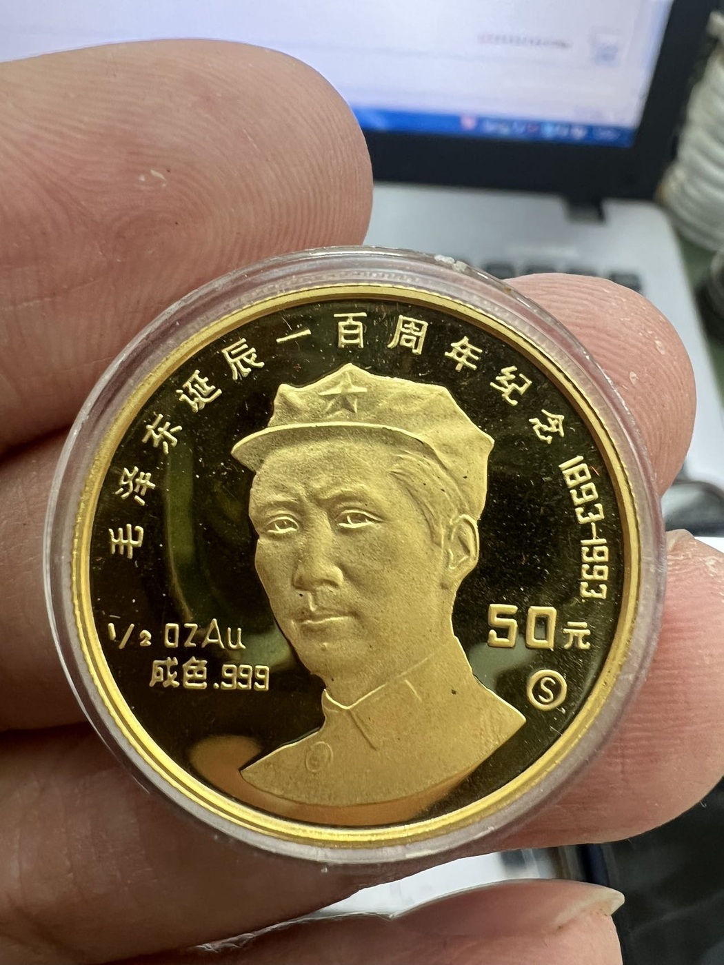 → 售1993年毛泽东诞辰100周年1/2盎司金币一枚