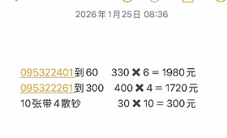 → 便宜处理095头无4,带4,无47标十,散钞
