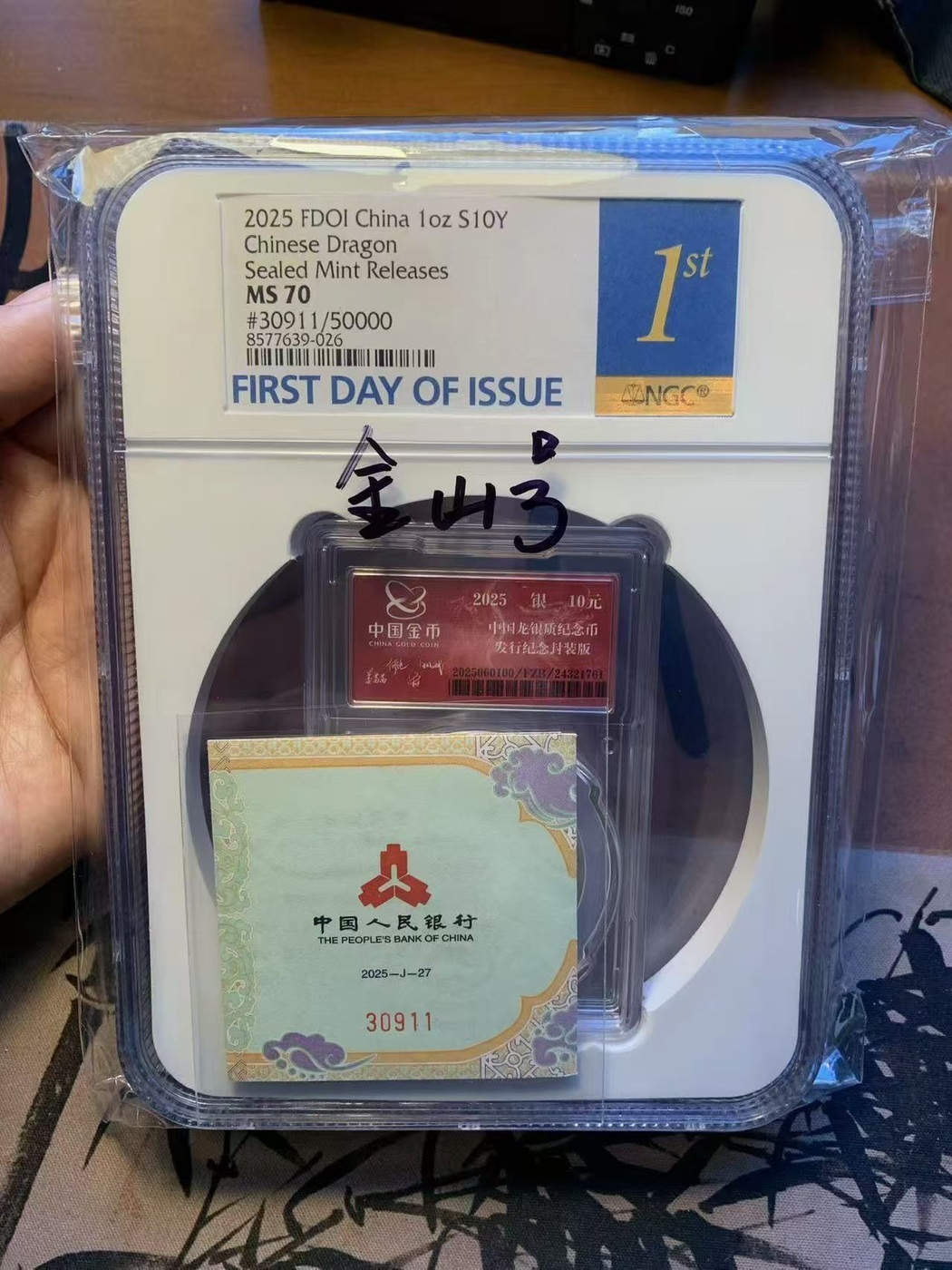 封装龙【首日】70【金山号】万位3双尾11,币证合一