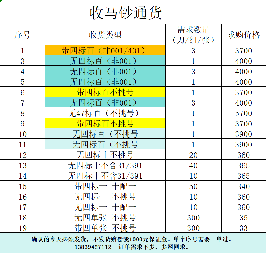 → 高价收马钞带四无四标百、标十、散张!高价收马钞带四无四标百、标十、散张!