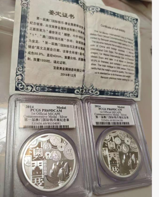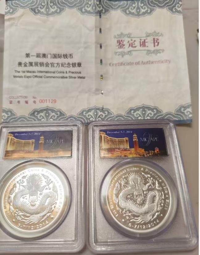 6 第一届澳门国际钱币展1盎司银章,发行量1999枚,1个有证书,1500元每枚通走。