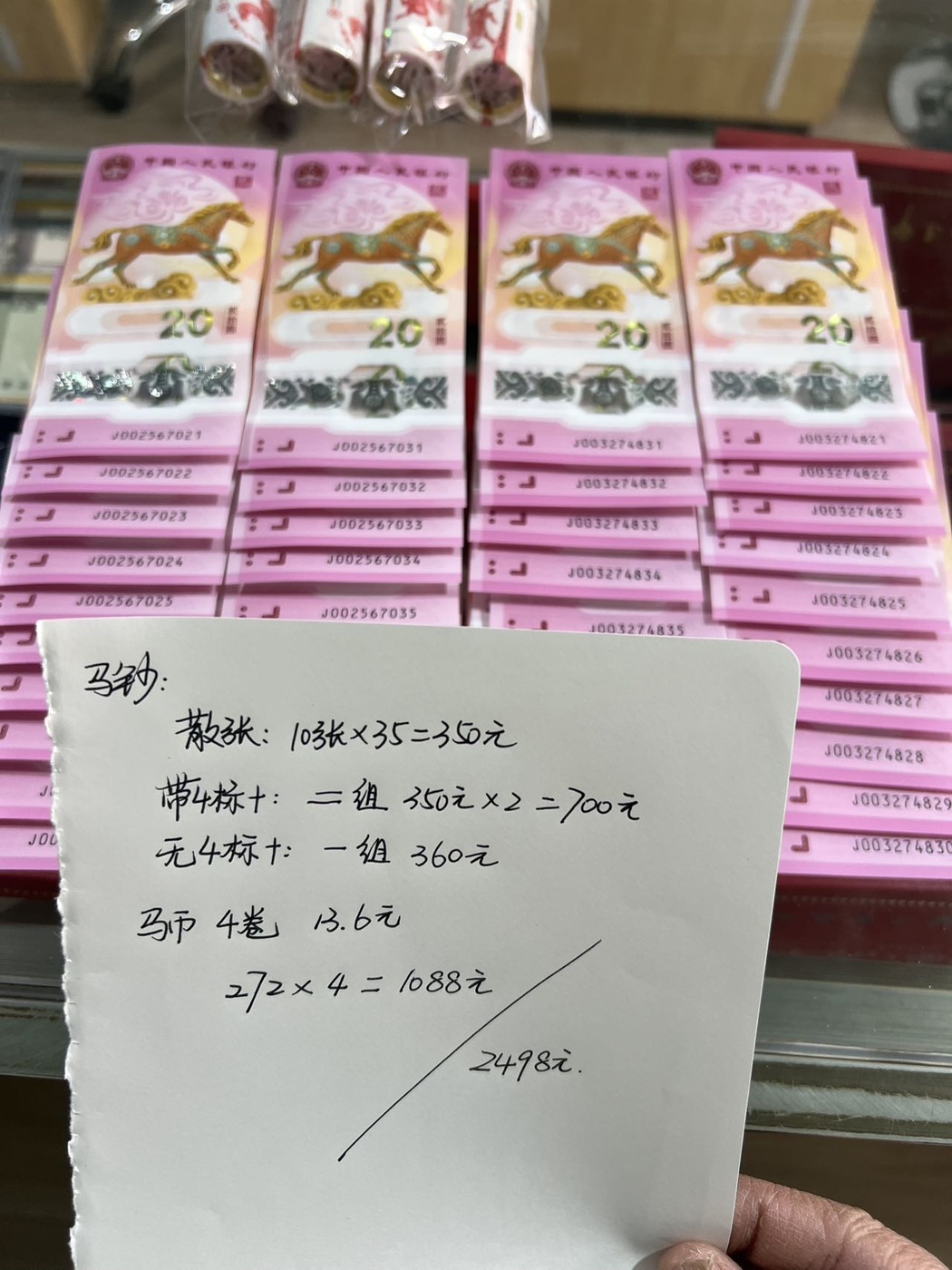 40张35元通走(含3个标十),4卷币270元,一起2480元继续