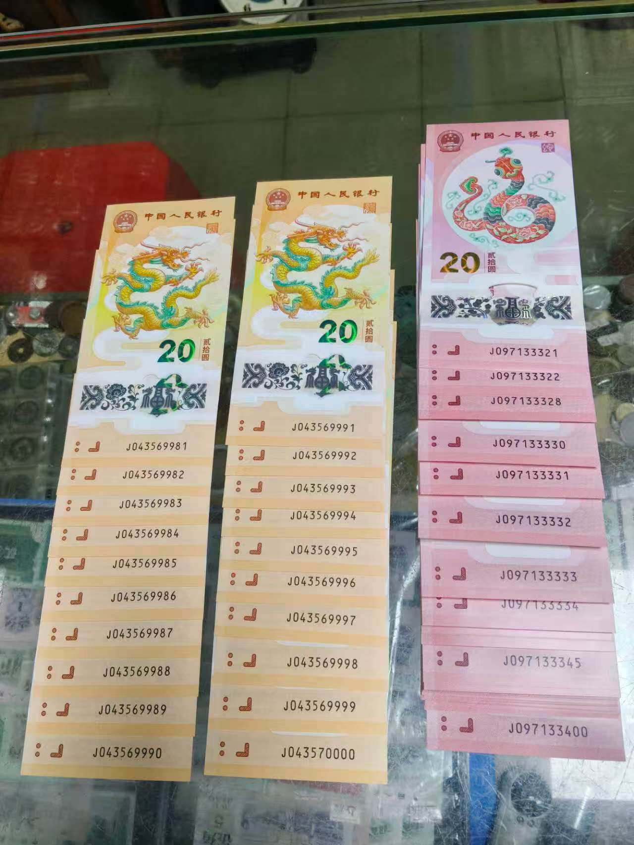 出小龙钞标十2组带4含9999.0000蛇钞80连无4含33333如图
