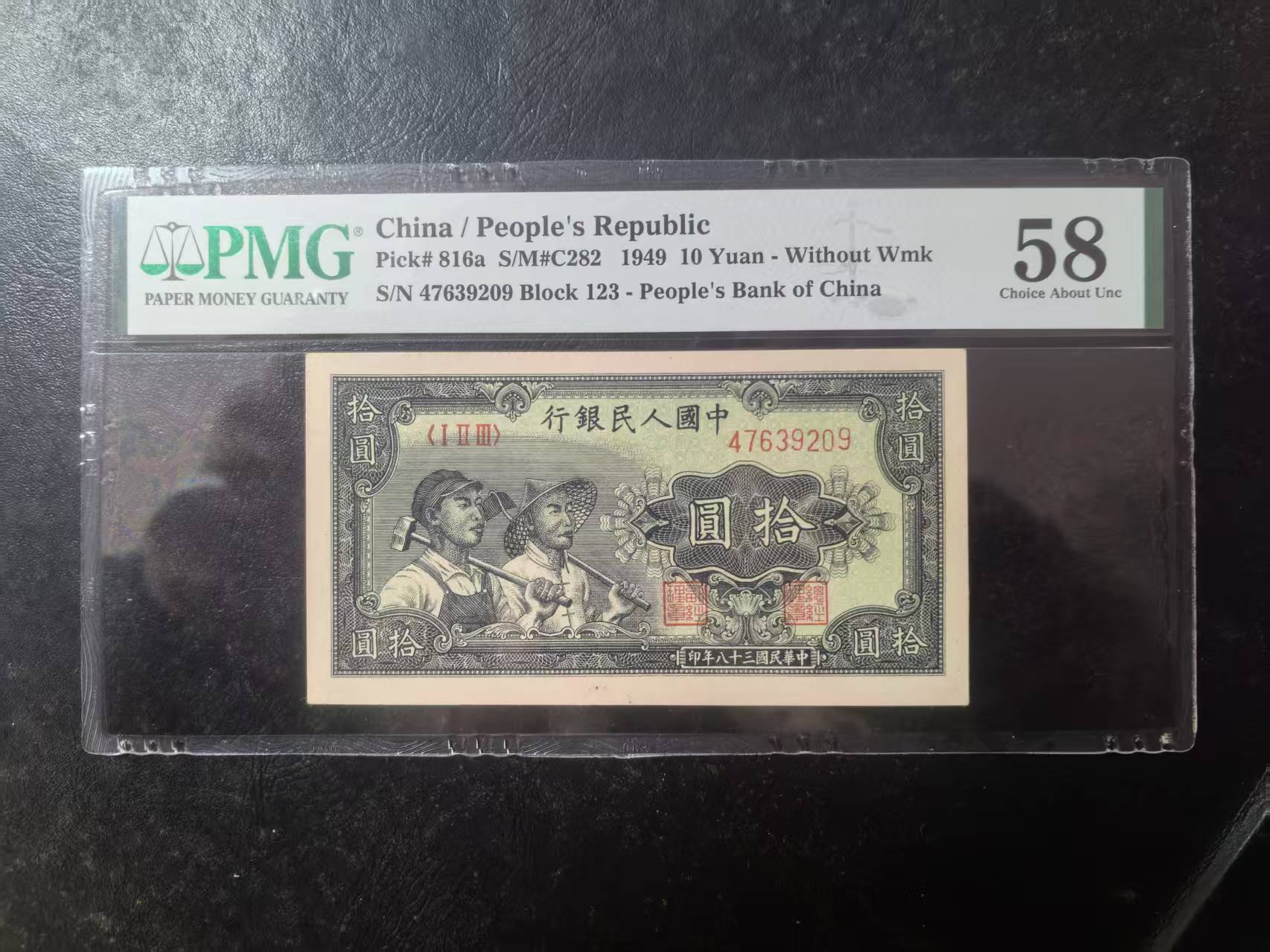 一版工农全新原票美评PMG58,票面干净平整,颜色鲜艳,状态自然,售价2100包顺丰