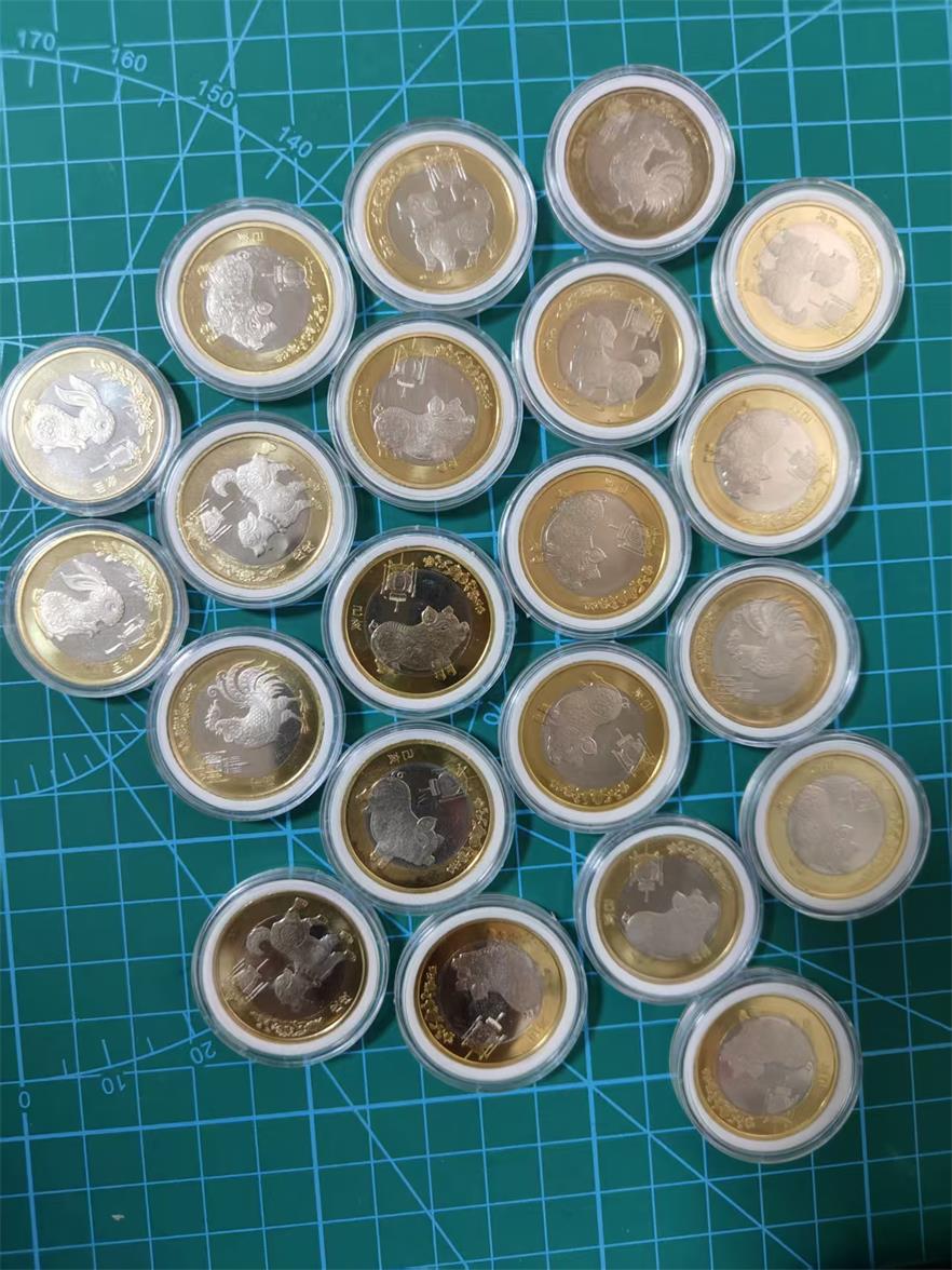 如图 11枚二猪 5枚二狗 3枚二鸡 两枚二兔 有瑕疵 面值210 加15 京东包邮非偏远 电联确认