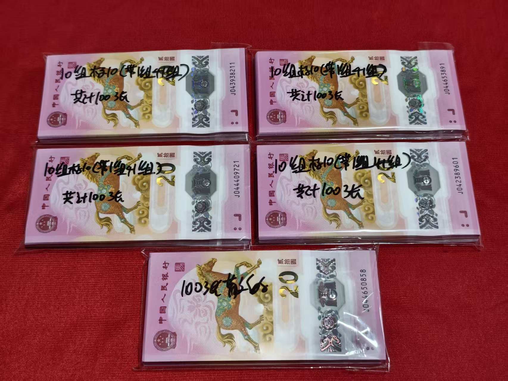 35出40组马钞10带一组41组标10,34出100张散马钞