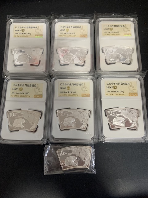 810出2009年扇银牛,810×7枚(1裸+6评级)不单出,包邮