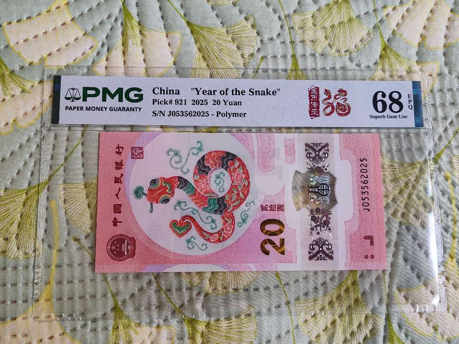 → 出蛇钞无47尾2025年份号,稀少蛇年号单张,PMG68分