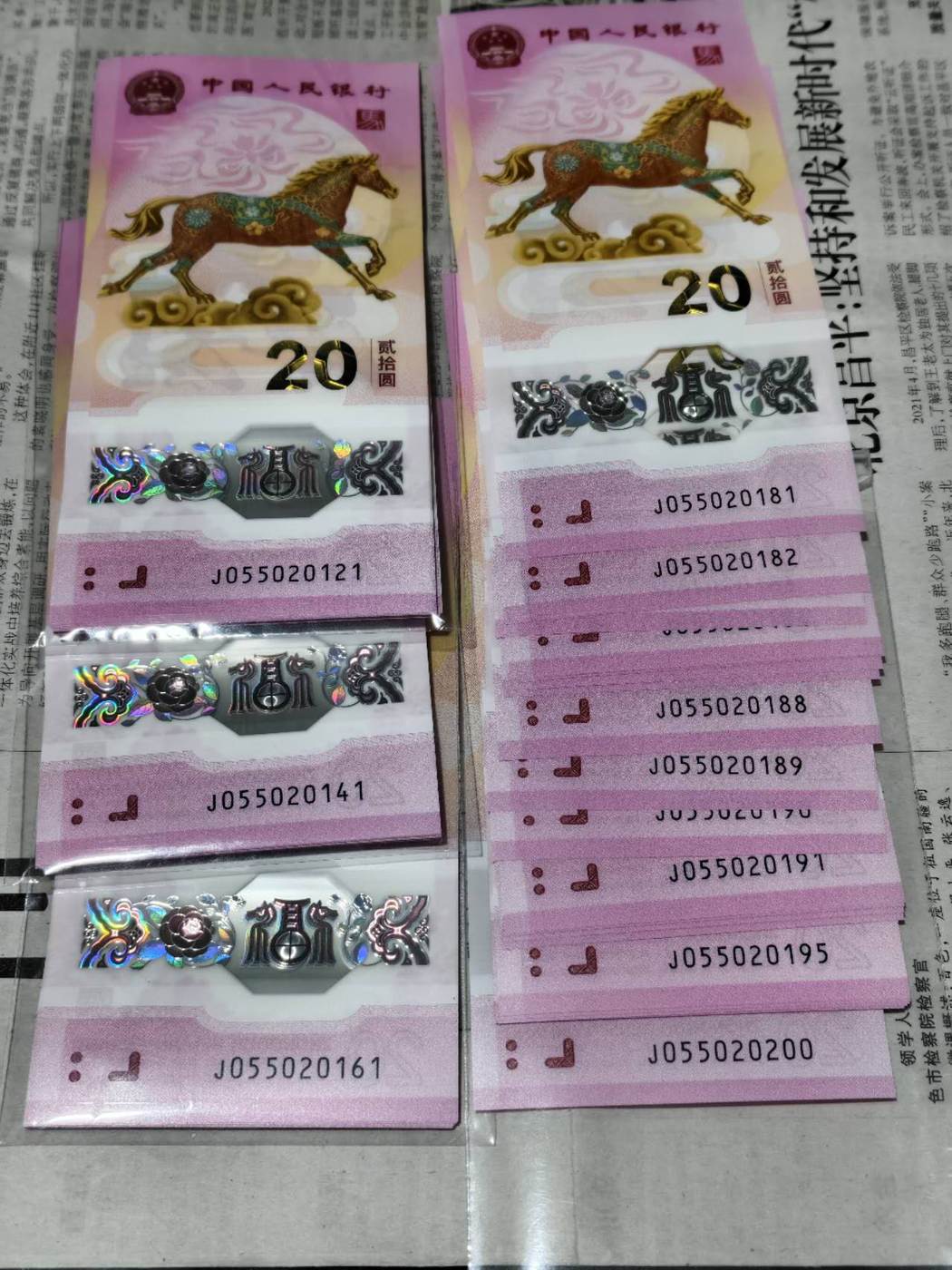 → 出马钞055020121一一200共80张大连号