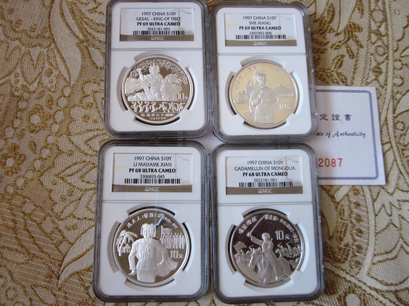 → 实铸量少的【97少数民族文化】4枚套银币:美国评级NGC老标
