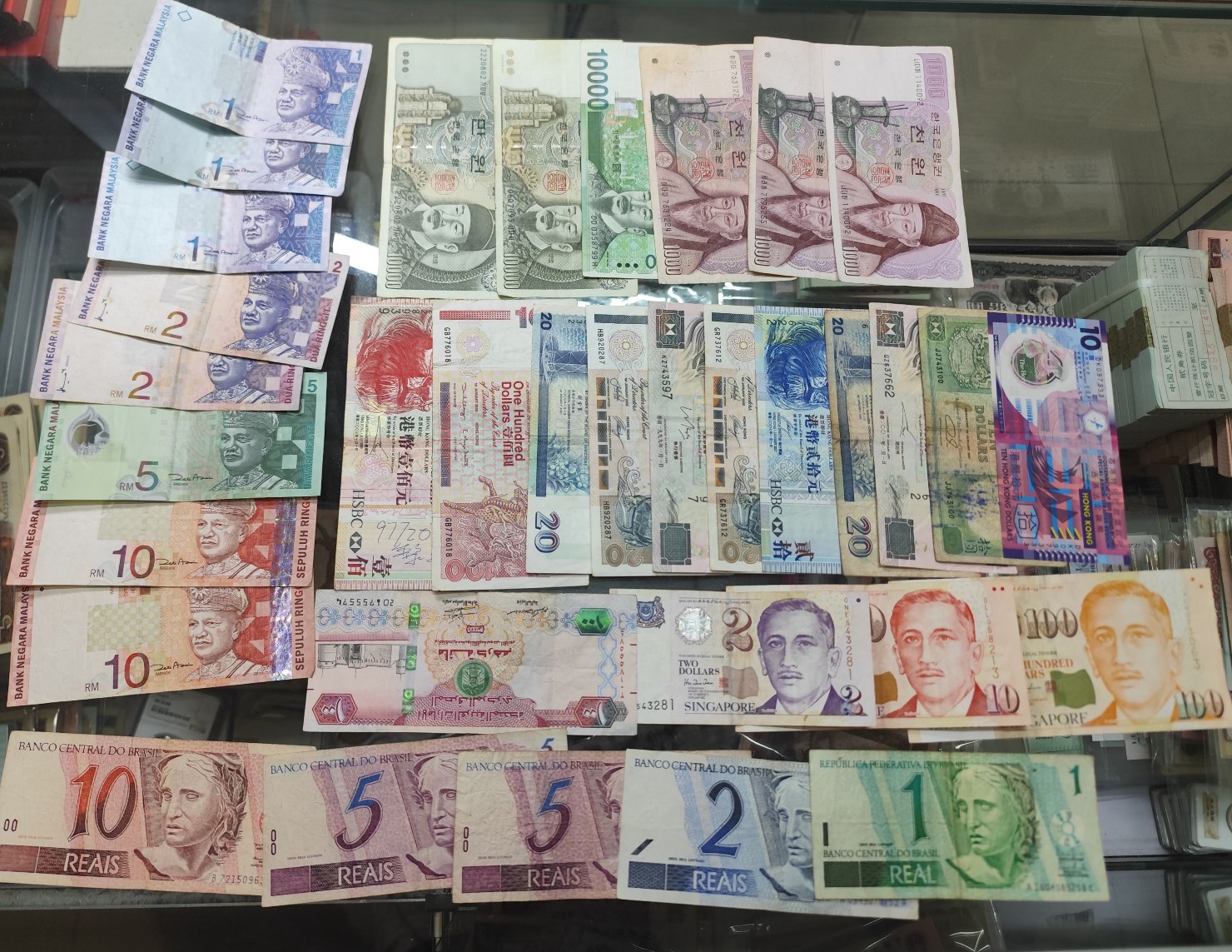 32马来林吉特 55元!33000韩元158元!360港币 330元!100阿联酋迪拉姆 188元!112新加坡元613元!23巴西雷亚尔30元!一起走共计1374元!包邮!