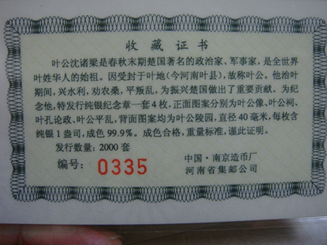 → 叶公纯银纪念册
