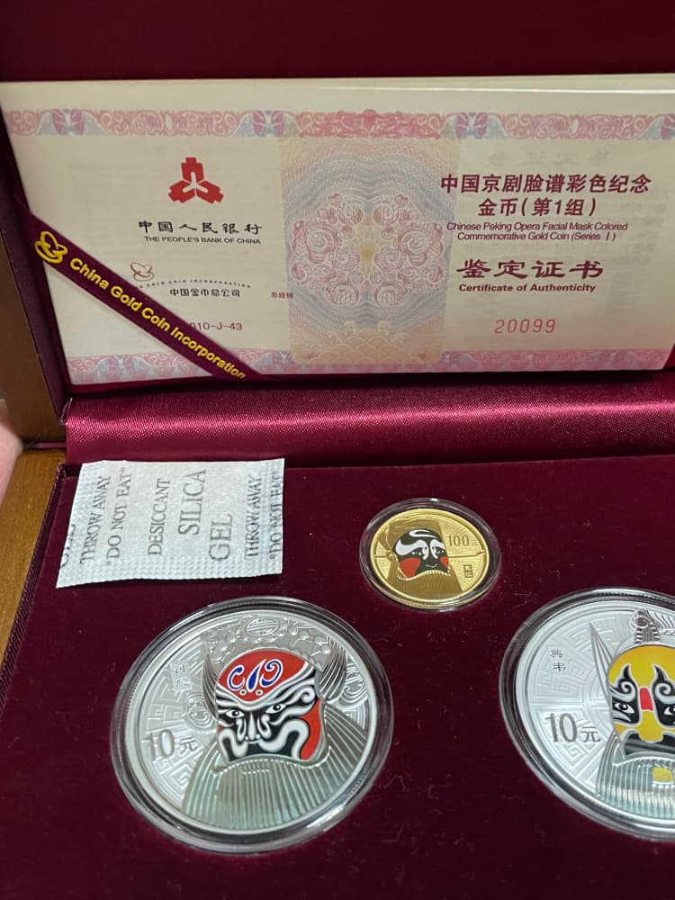 → 2010年脸谱一组金银币一套!证书号好!