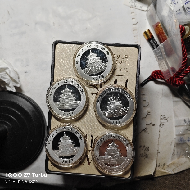 一盎司熊猫银币5枚,870元一枚