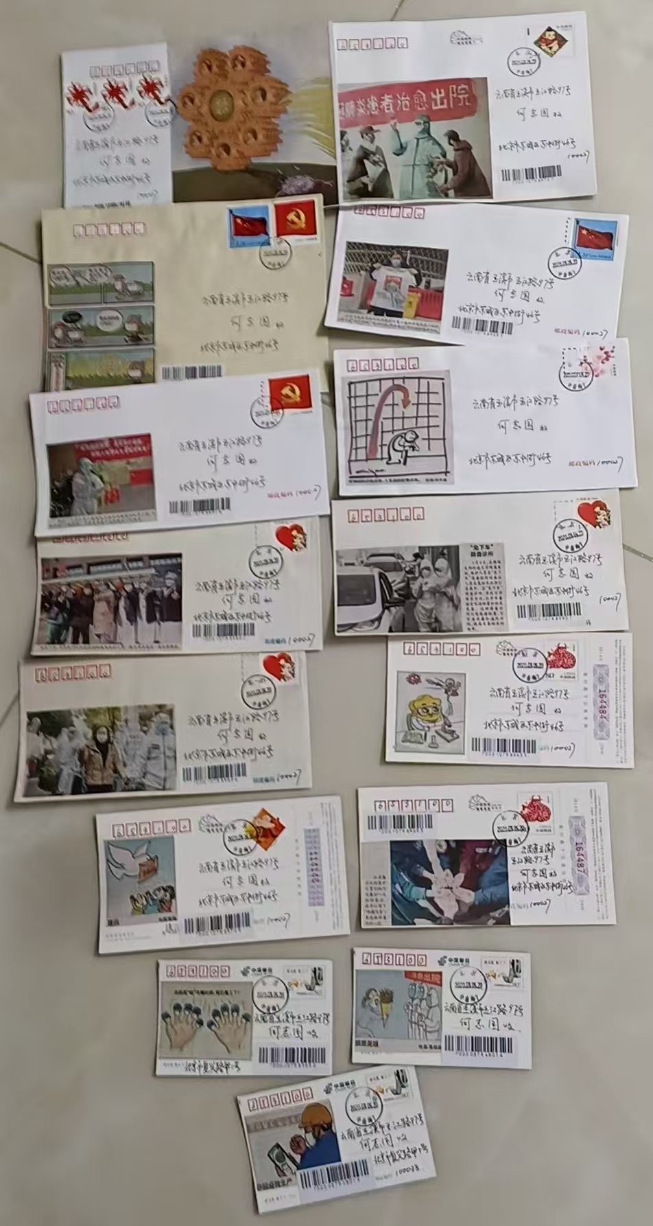 微信号和手机号都是13082369091.帖子里个别有已经售出后没有删除的,以找到实物为准。抗疫题材实寄封片一组15件,200元。