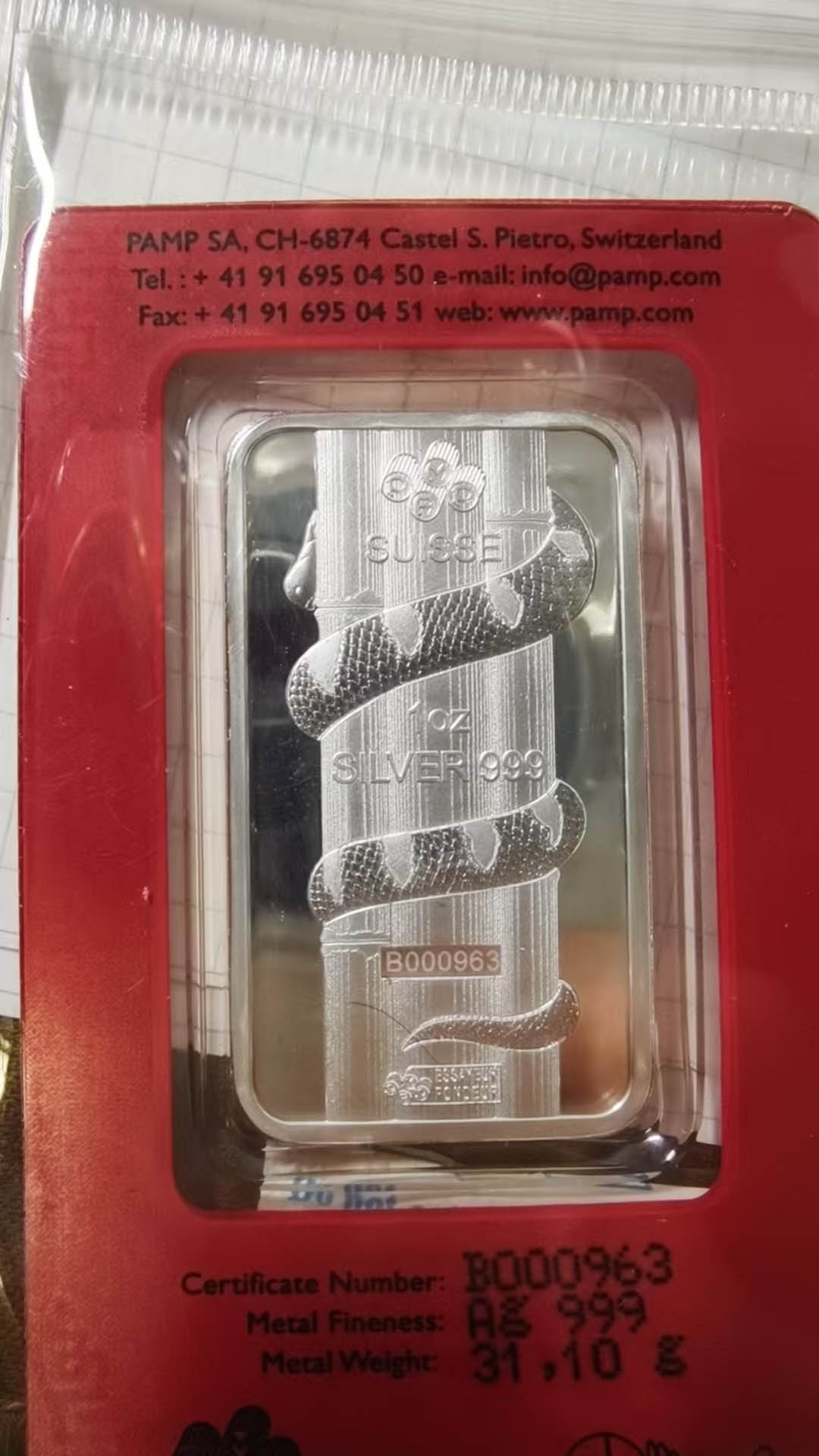 → ▆▅▃880/条,出瑞士1盎司生肖银条