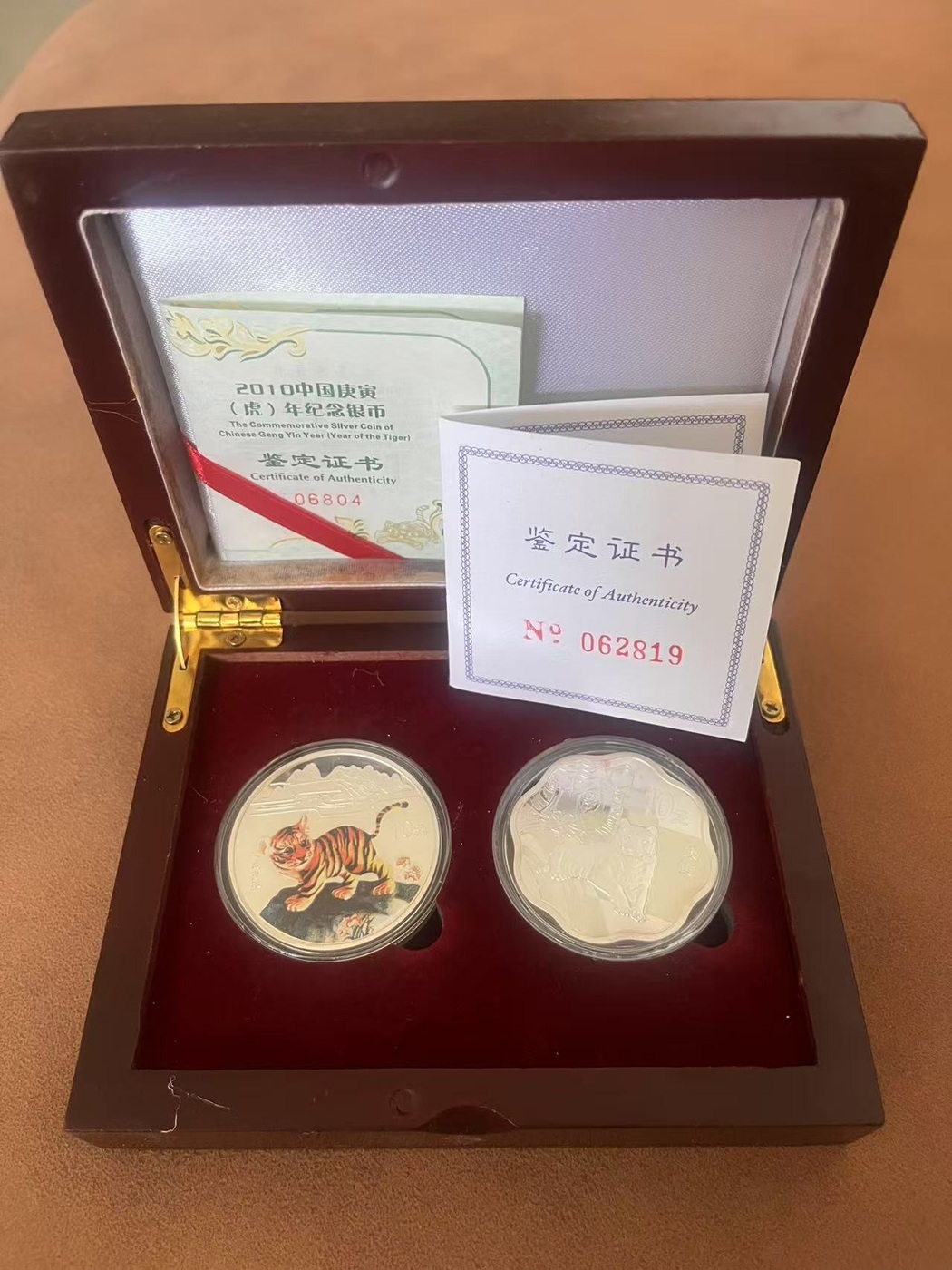 98年彩银虎和2010年梅花虎各一枚,98年证书是朦胧号,一起出1800元包顺丰