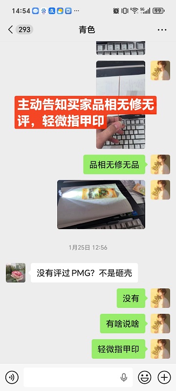 1.我主动告知该龙钞品相属于无修无评级,有轻微指甲印且发图标注
