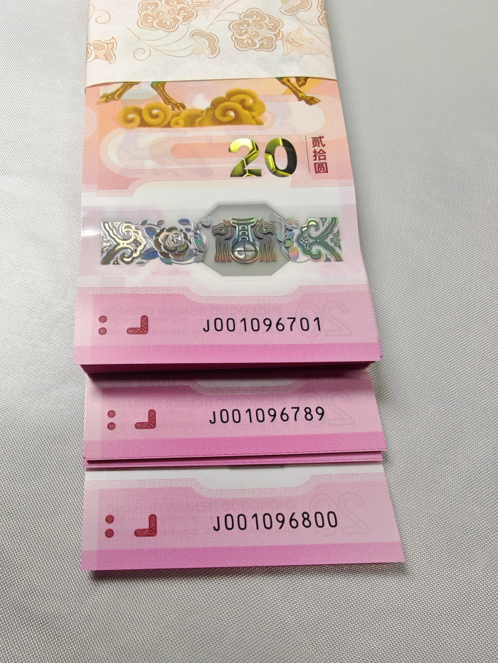 → 马钞,001096701标百,带倒置