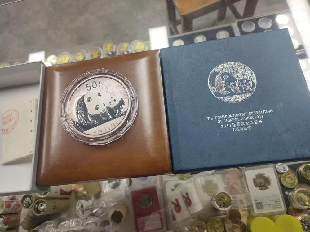 2011年5盎司银猫,盒证齐全,边有氧化,4500元,电联确认,本价格13:30以前有效