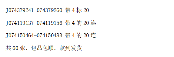 如题,1组带4标20,2组带4的20连,一共60张,33.5元/张便宜快出,包品包快,款到发货