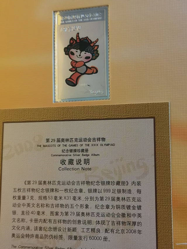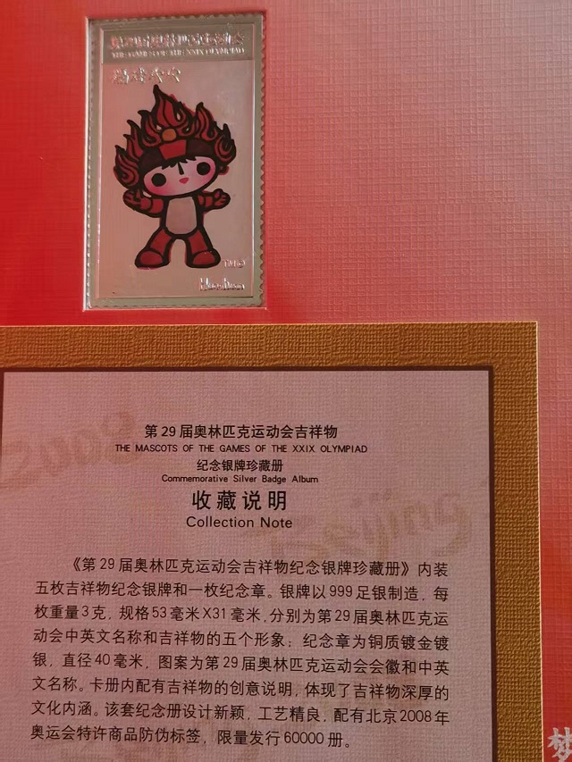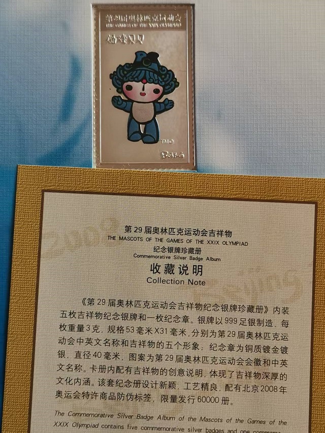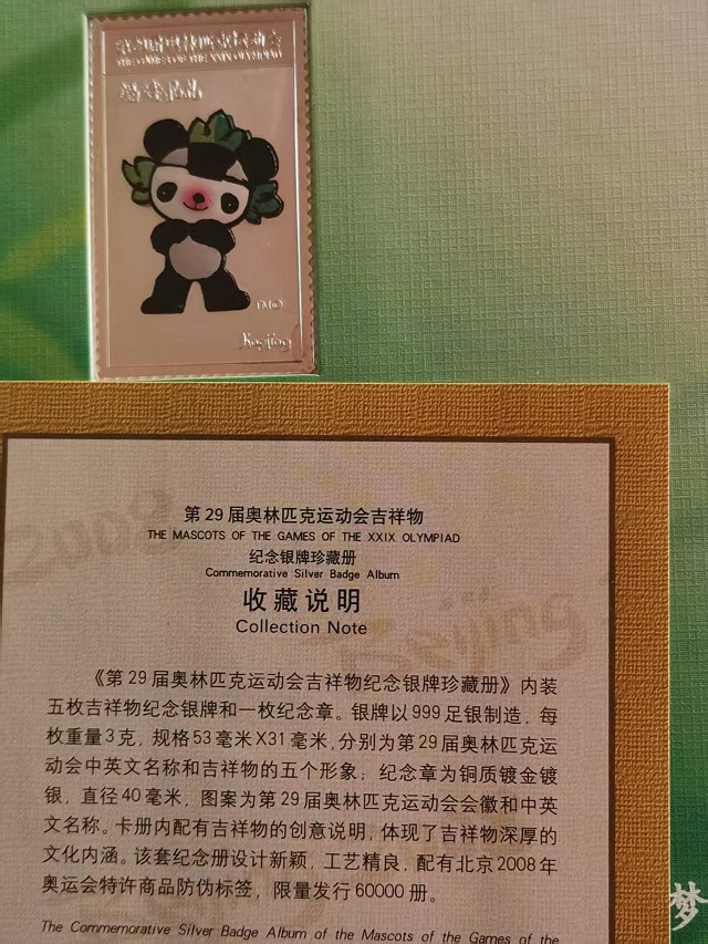 29届奥林匹克运动会吉祥物纯银纪念章:3克/枚,5枚,