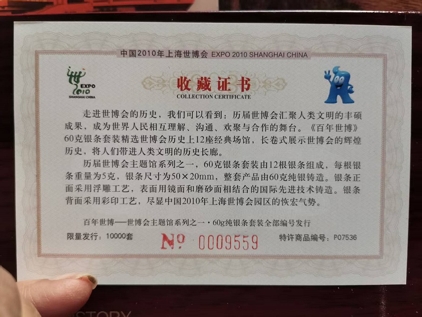 2010年上海世博会纯银 银条:5克/个,12个。