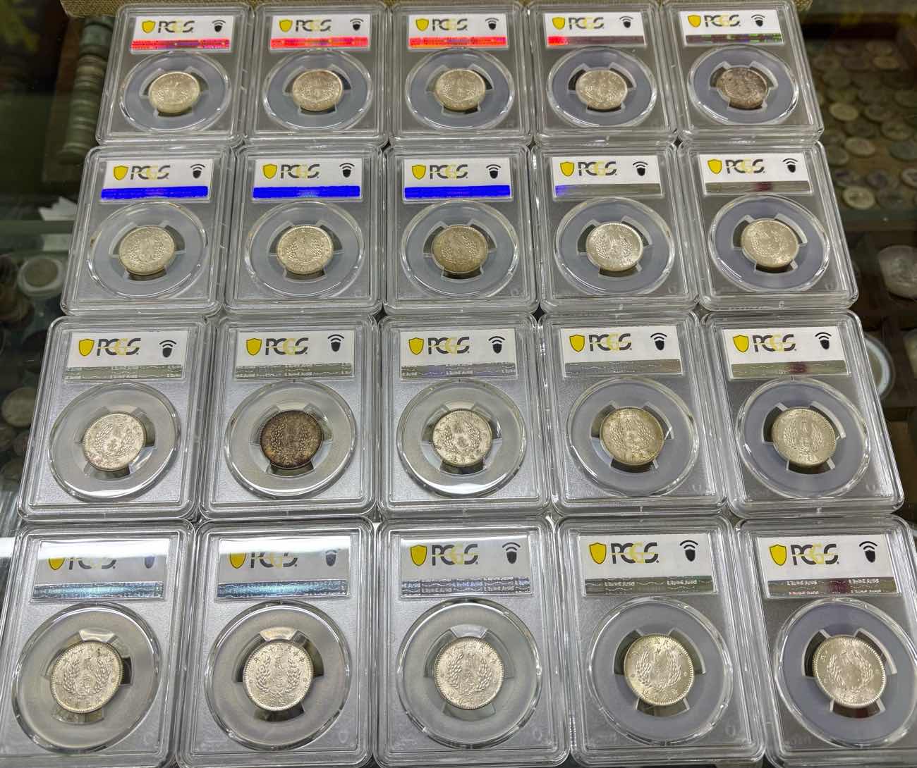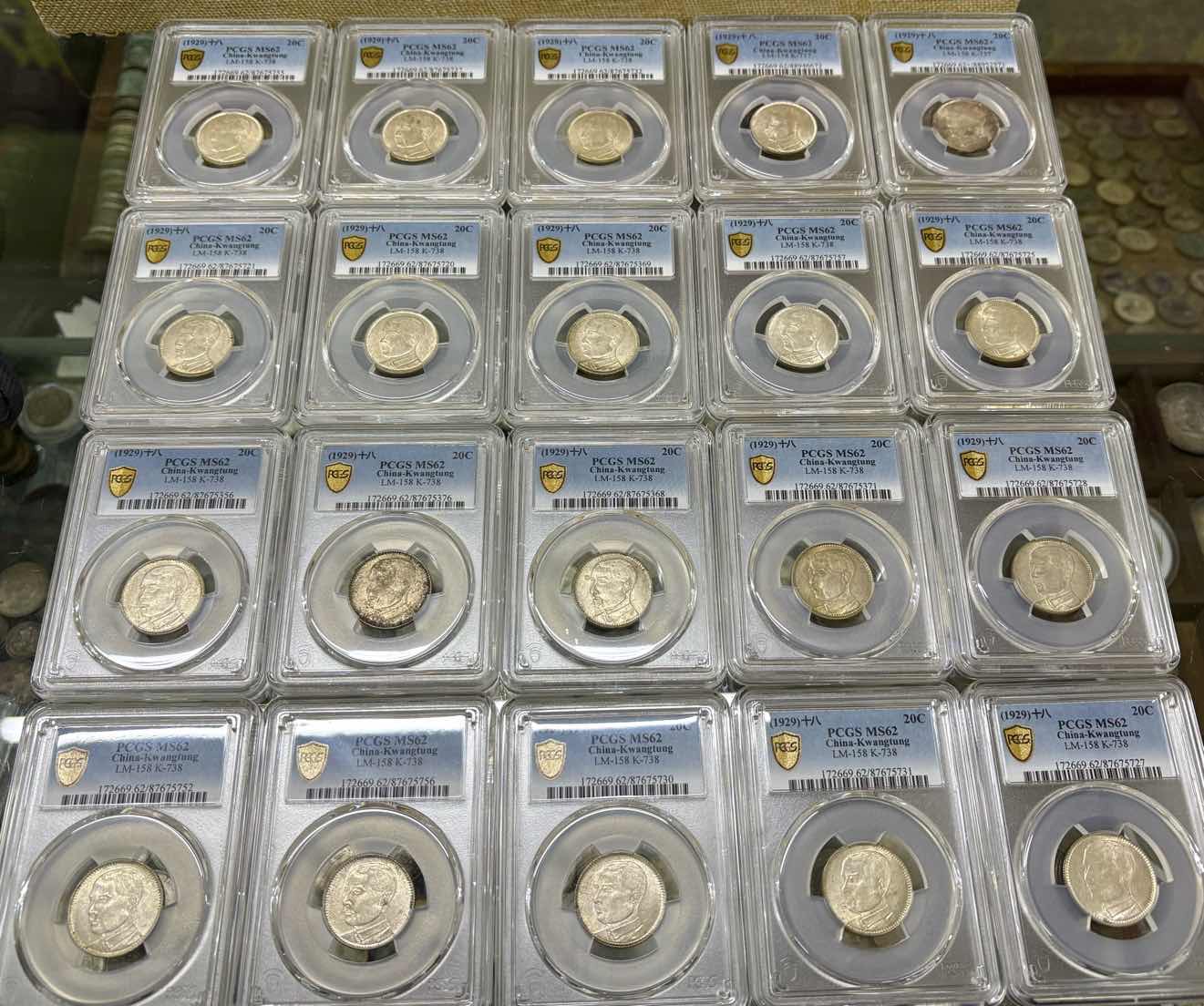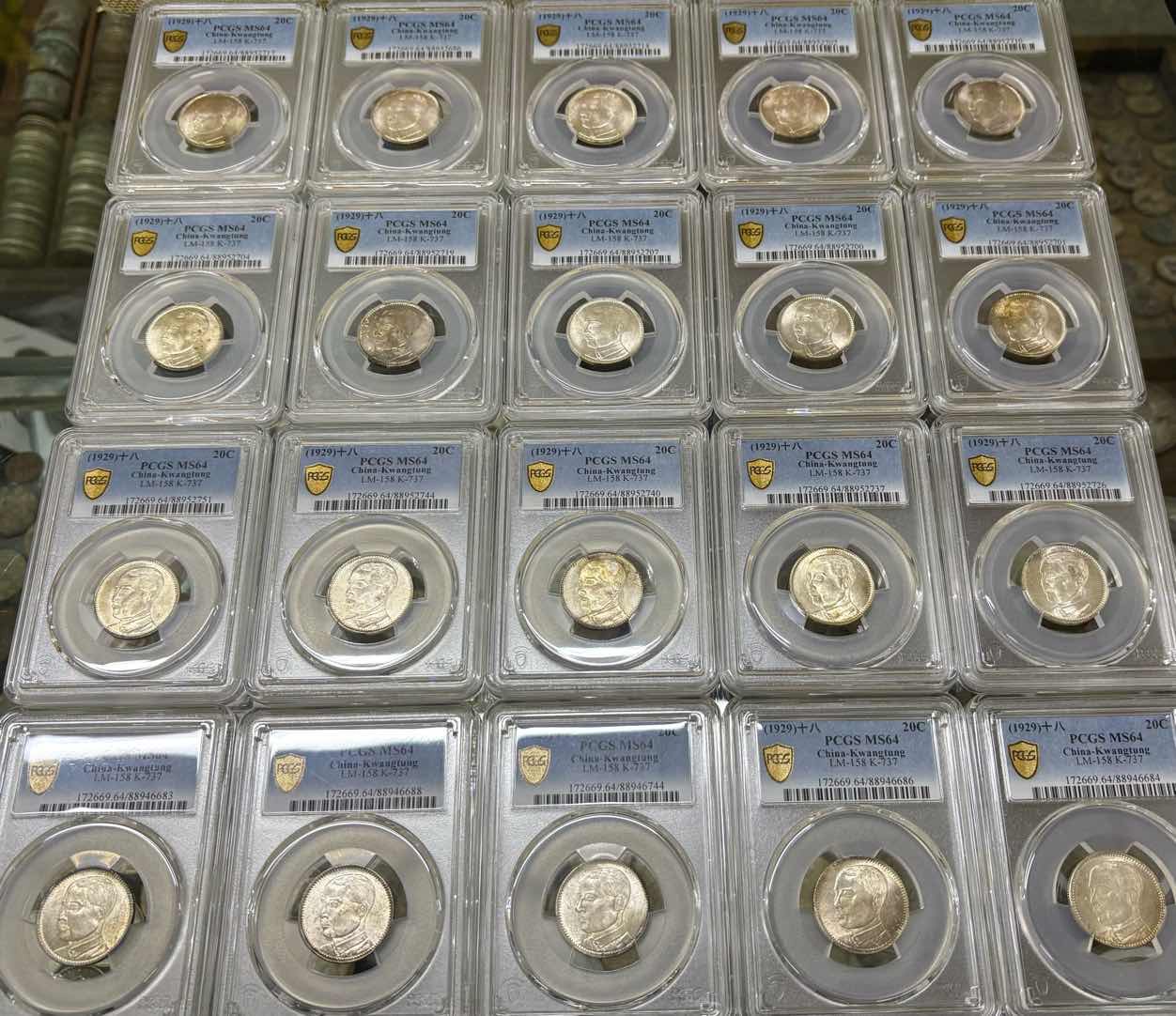 → ——【评级费+银价】——pcgs 62/3/4孙像十八年贰毫银币