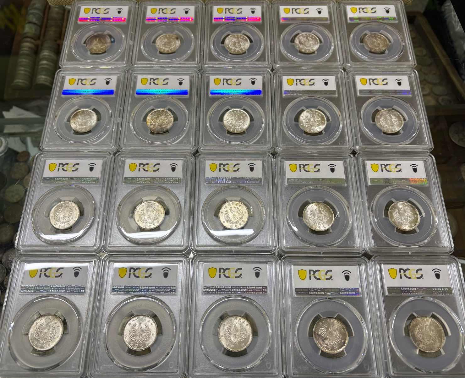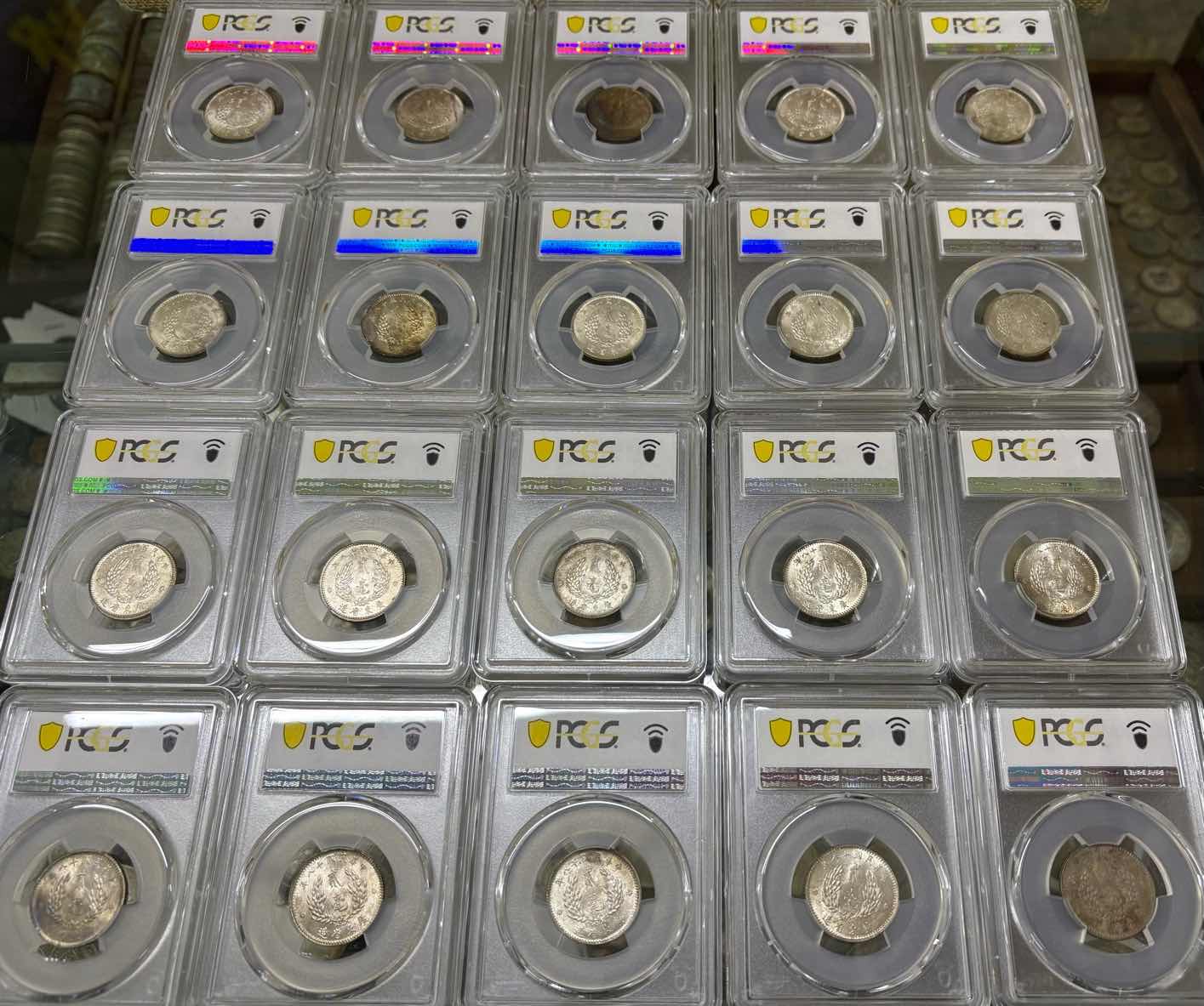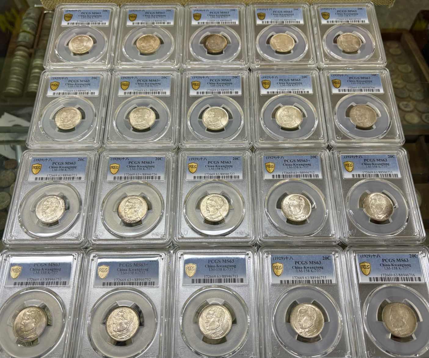 → ——【评级费+银价】——pcgs 62/3/4孙像十八年贰毫银币