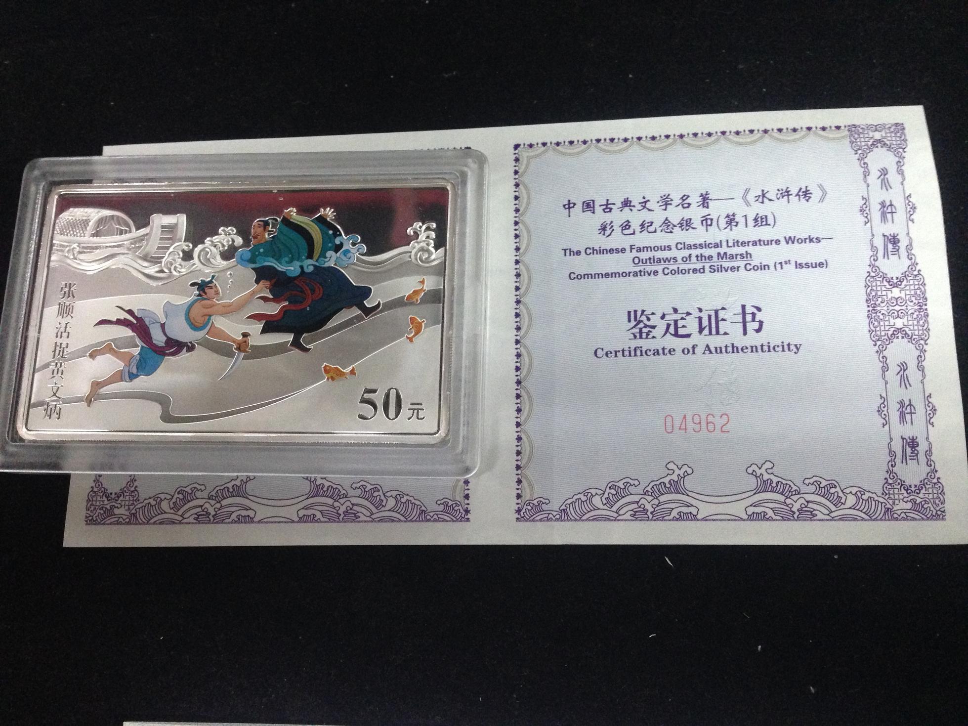 售:5盎司彩银水浒一、水浒二、水浒三、神话三鹊桥相会、红楼梦一宝黛读书各1套,价格4800元/套。