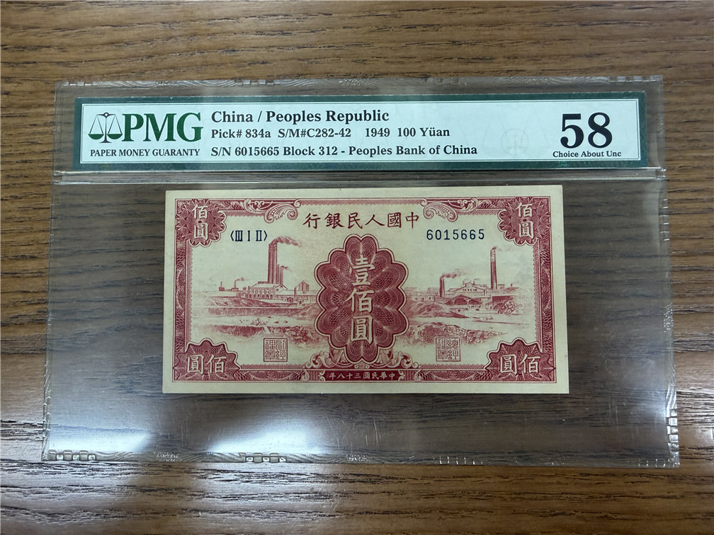 售100元红工厂错版  6015665  PMG58