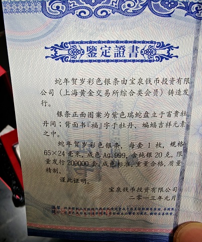 宝泉2013彩银蛇,20克,600元