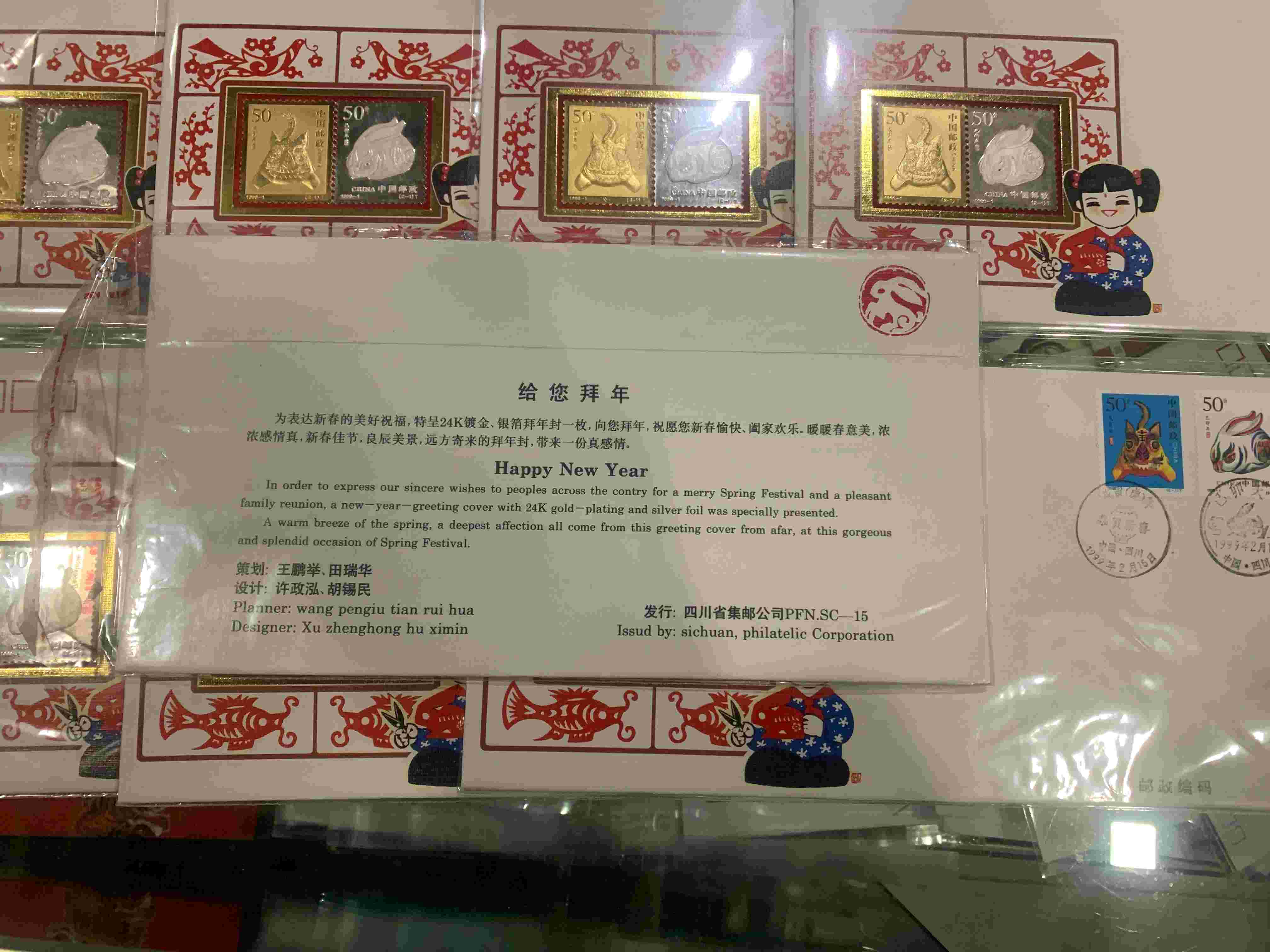 300.00元/枚出1999镀金镀银拜年封8枚