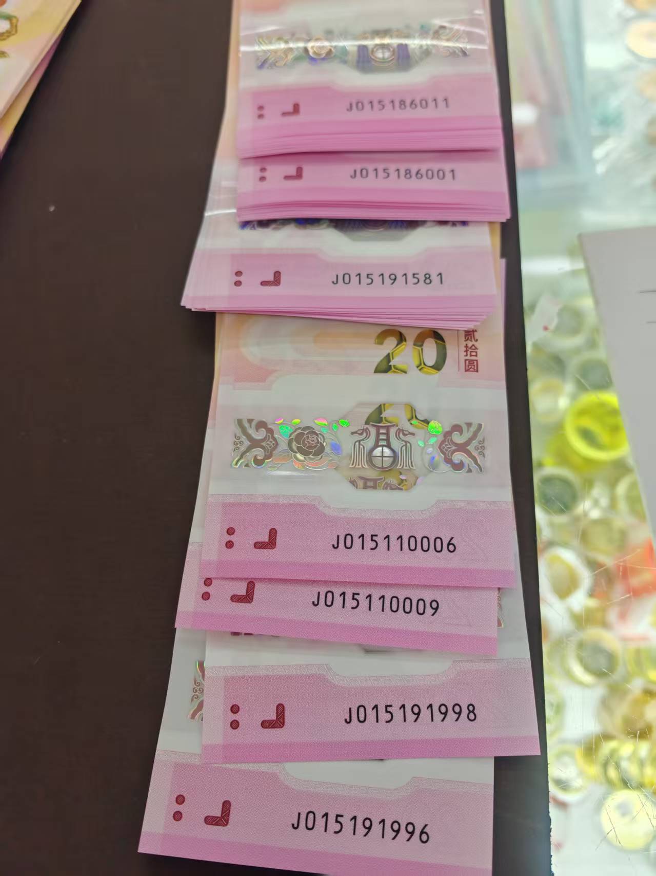 售马钞金马号标十两组号段015186001一组0151186011一组售1950元一组